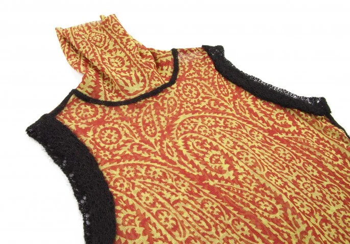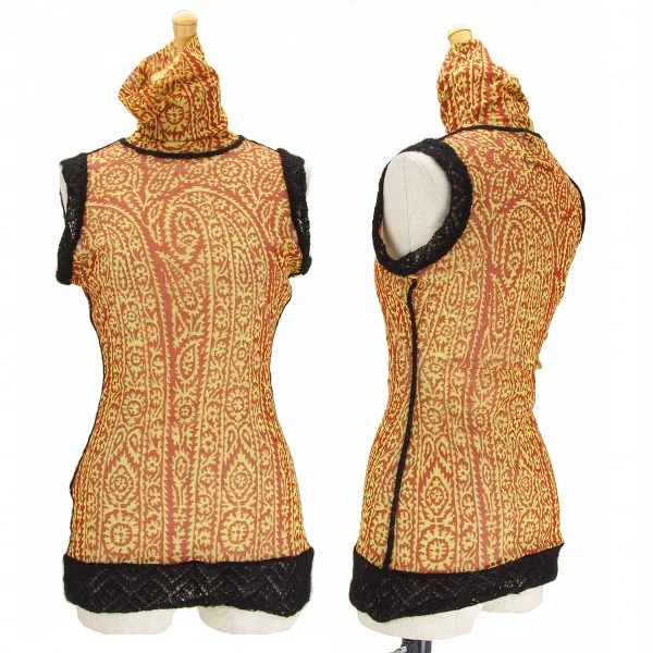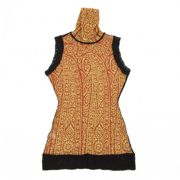 ジャンポールゴルチエファム Jean Paul GAULTIER FEMME 柄ノースリーブハイネックカットソー オレンジ黒40
