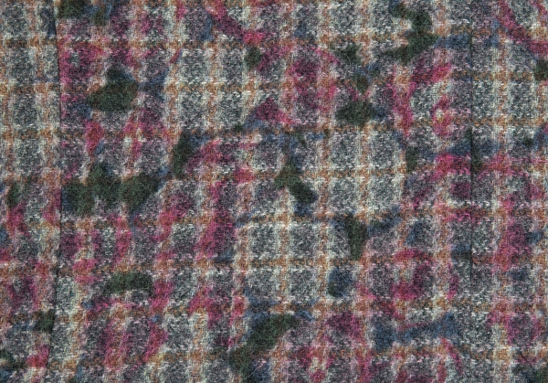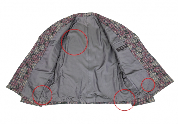 コムデギャルソンオムプリュスCOMME des GARCONS HOMME PLUS ダブルボタンフラワープリントツィードジャケット グレーM