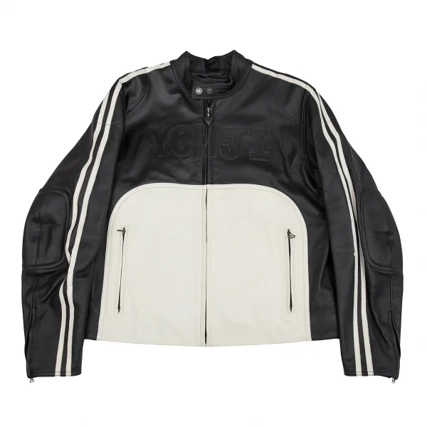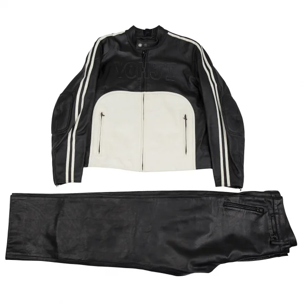 ヨウジヤマモト プールオム×ダイネーゼ Yohji Yamamoto POUR HOMME×DAINESE レザーセットアップスーツ 黒白54