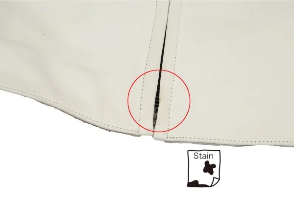 ジャケット袖裏・裾裏に汚れ、前身頃裾に薄シミがあります。(写真参照)その他目立ったシミ、汚れ、ほつれ等なくいい状態です。クリーニング済み