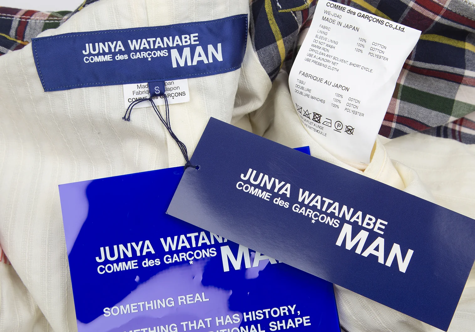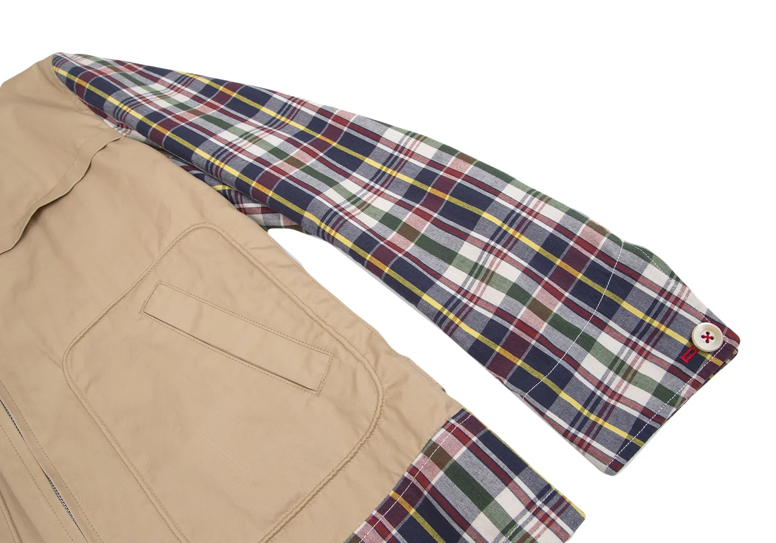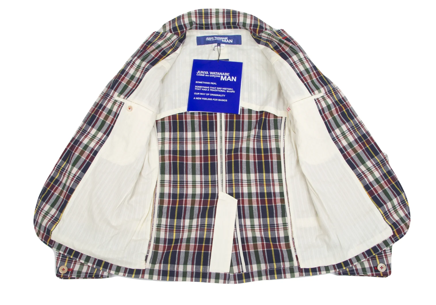 新品!ジュンヤワタナベマン コムデギャルソンJUNYA WATANABE MAN COMME des GARCONS 綿無地チェック柄ジップジャケット ベージュ紺S