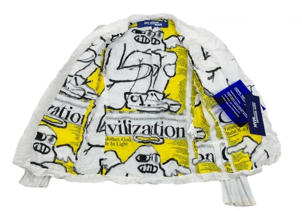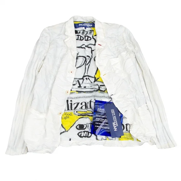 新品!ジュンヤワタナベマン コムデギャルソンJUNYA WATANABE MAN COMME des GARCONS リネンポリワッシャー加工裏プリントジャケット 白S