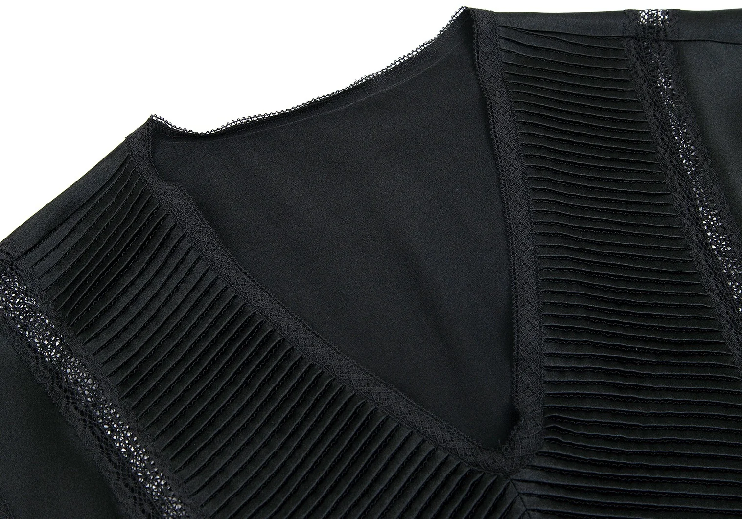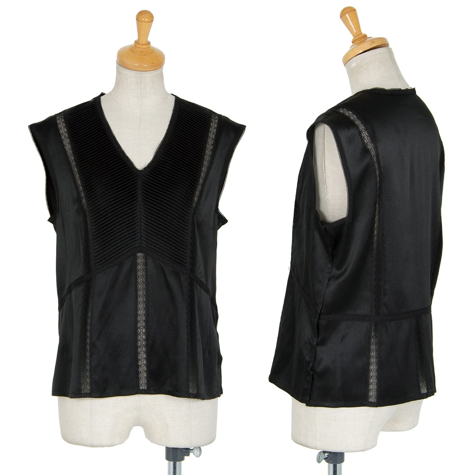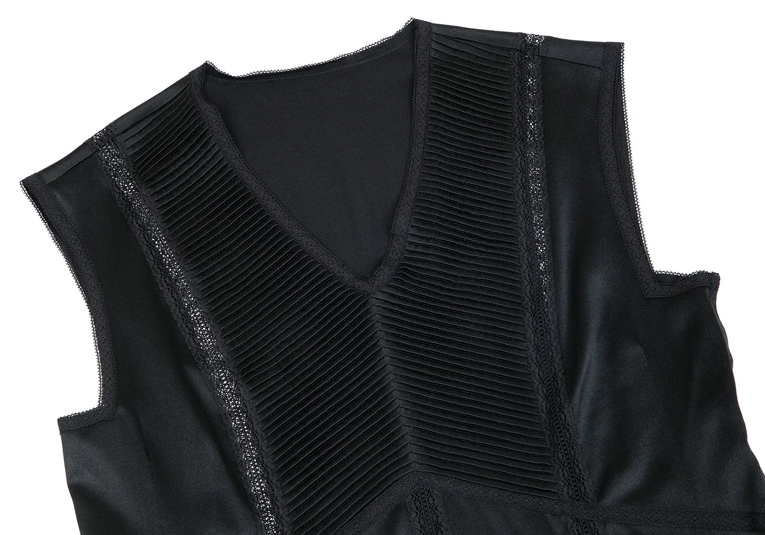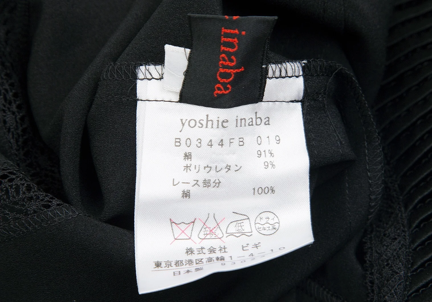 ヨシエイナバyoshie inaba ピンタックレーステープ切替シルクノースリーブ 黒9