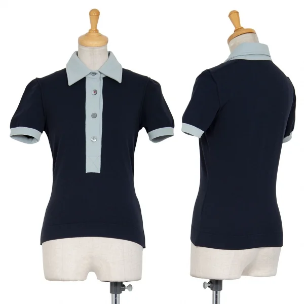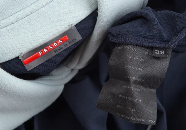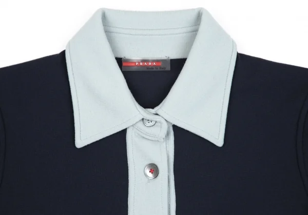 プラダスポーツPRADA SPORT バイカラー半袖ポロシャツ 紺38