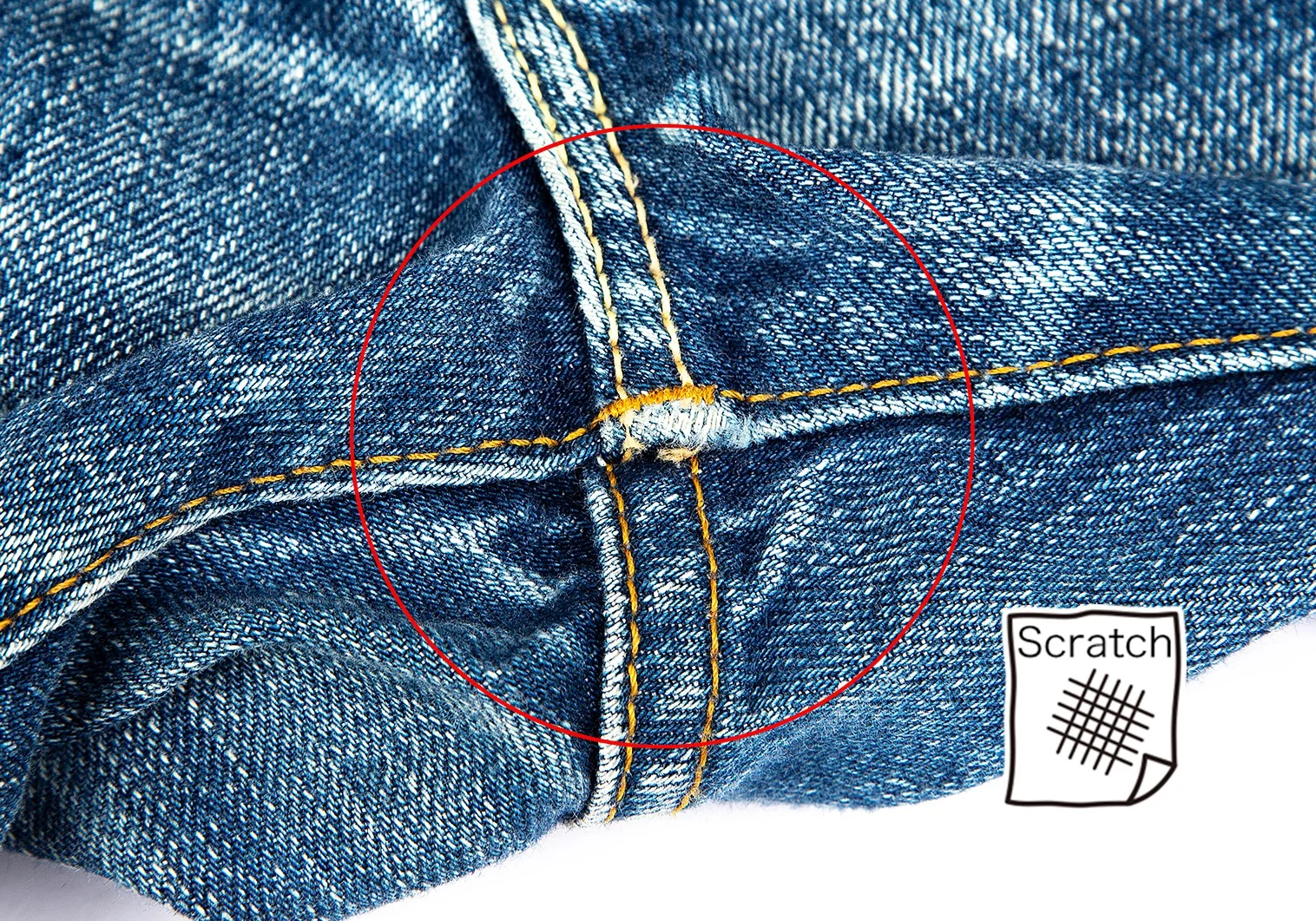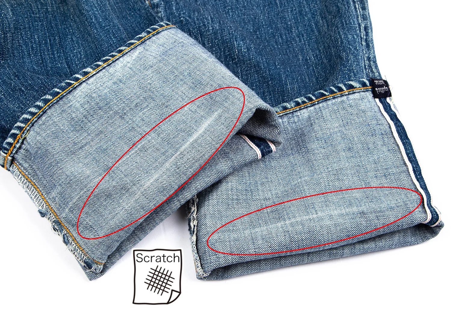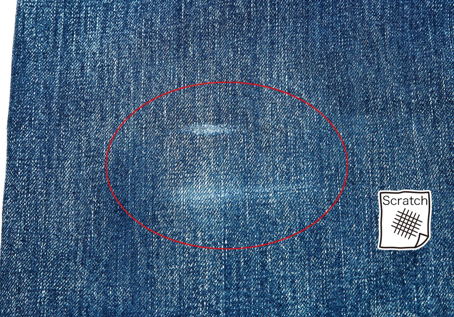股下にスレ、点シミ、後ろポケットステッチ切れ・スレ、裾表裏に折り跡があります。(写真参照)その他目立ったシミ、汚れ、ほつれ等ありません。クリーニング済み