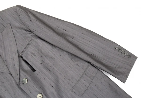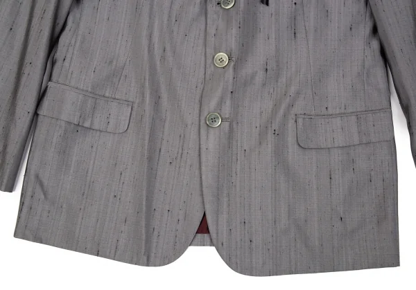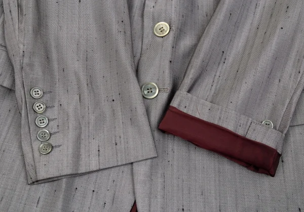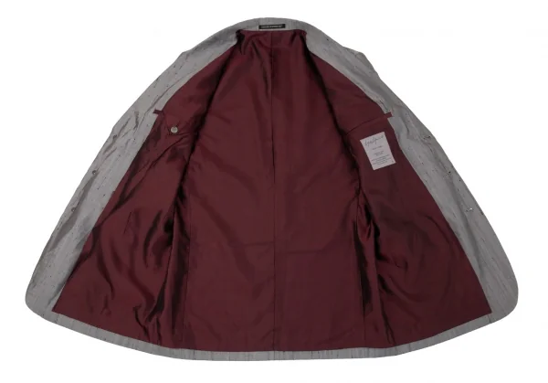 ヨウジヤマモト プールオムYohji Yamamoto POUR HOMME シルク紬3Bセットアップスーツ グレー2・4
