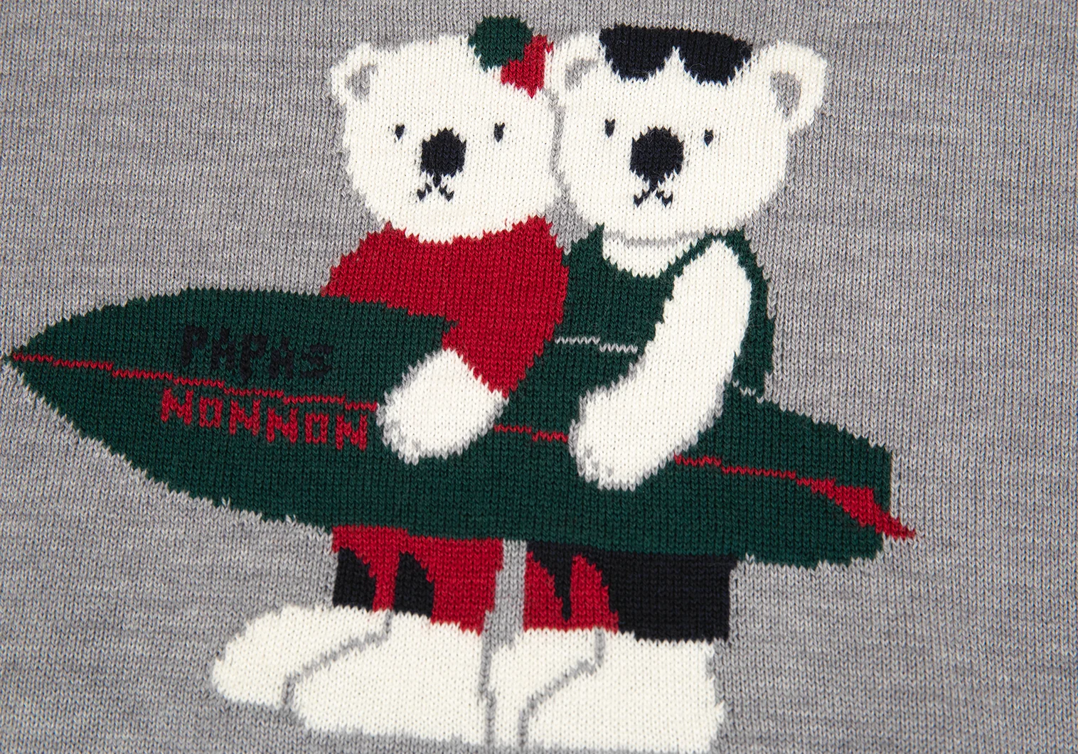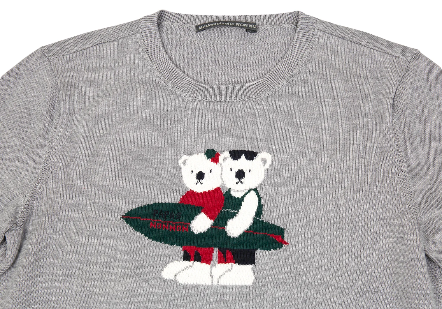 マドモアゼルノンノンMademoiselle NON NON サーフベアコットンウールブッチセーター 杢グレー38(M)