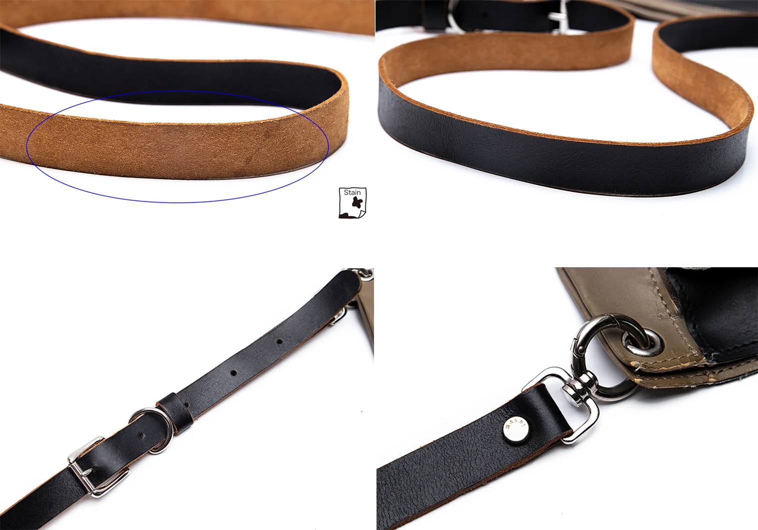 ショルダーは取り外しができます。前面、開き口内側、開き口上部、ショルダー裏に汚れ、角底、裏側レザー部分、縁全体に経年劣化があります。(画像参照)全体的に使用感がありますが、ご使用に問題はありません。