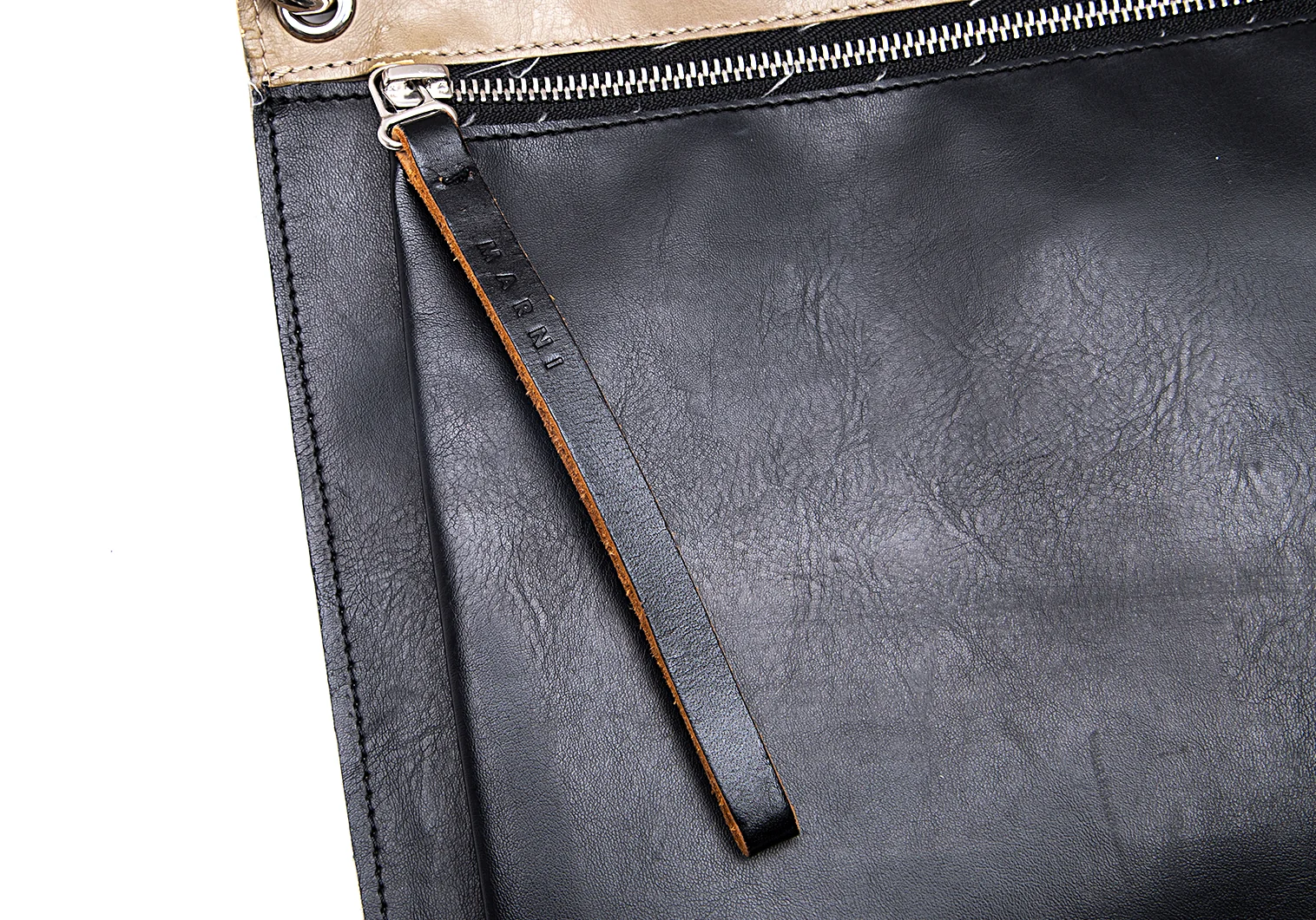 マルニMARNI 配色レザーショルダーバッグ 黒茶