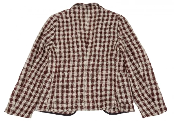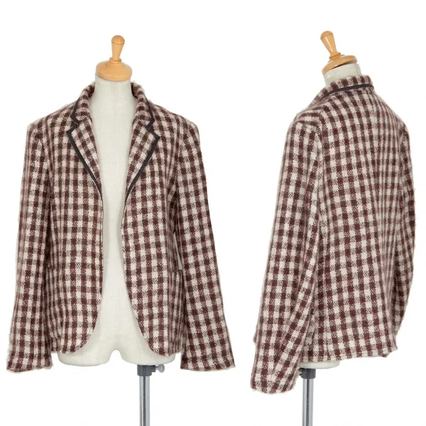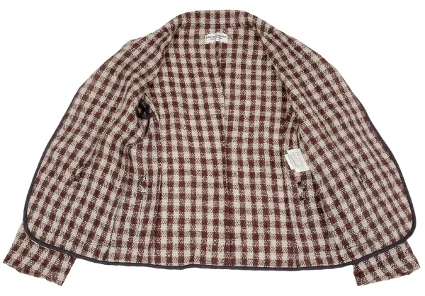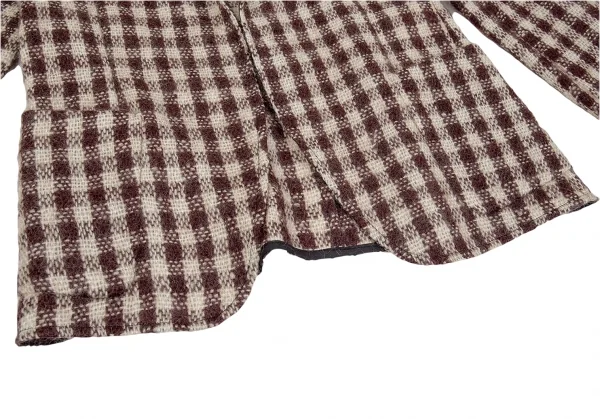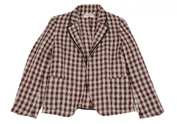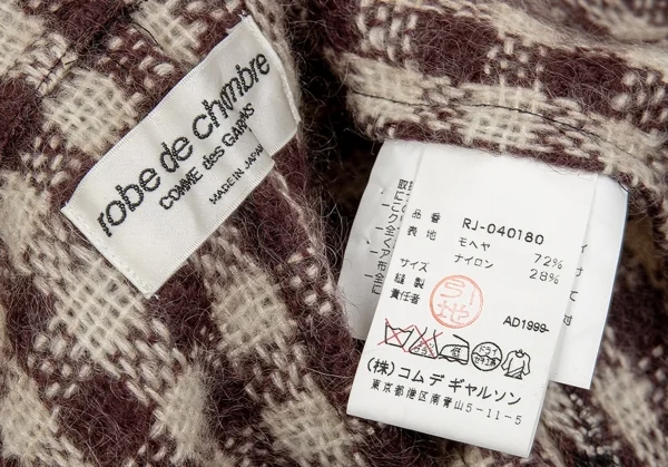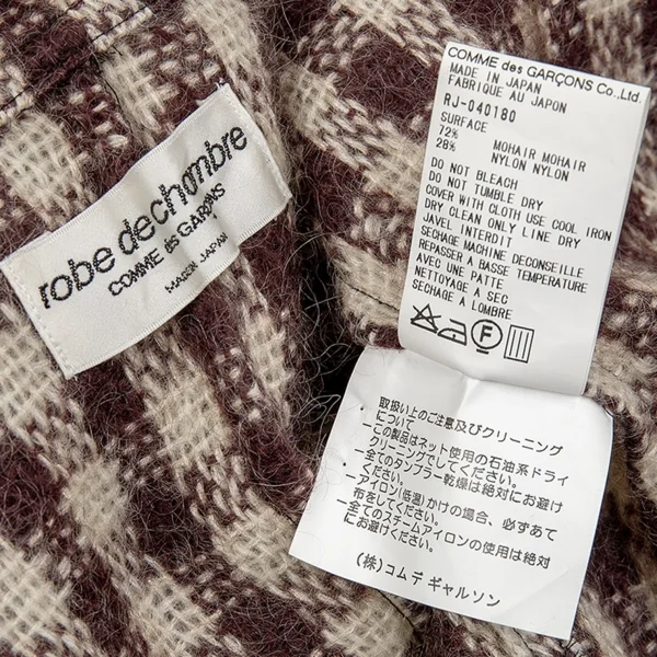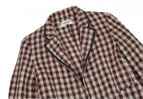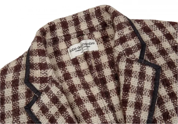 ローブドシャンブル コムデギャルソンrobe de chambre COMME des GARCONS モヘヤウールチェックパイピングジャケット 茶オフM位
