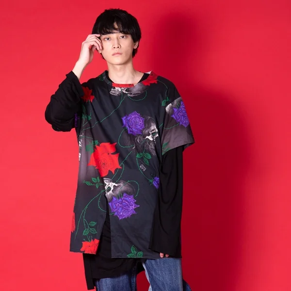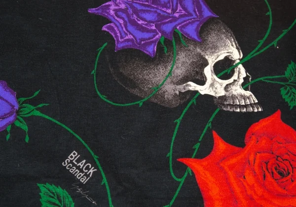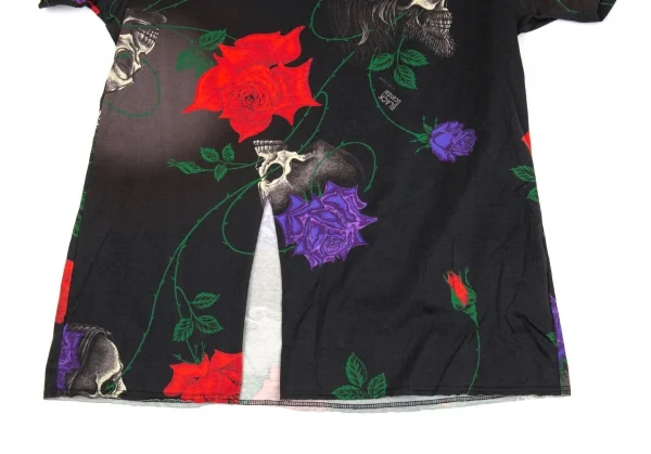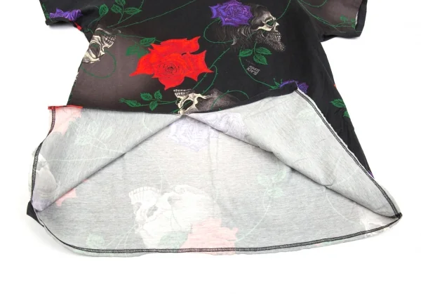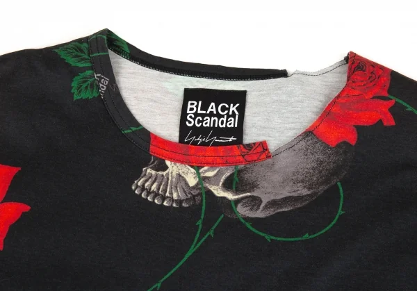 ブラックスキャンダル ヨウジヤマモトBLACK Scandal Yohji Yamamoto スカルローズプリントコットンロングカットソー 黒3