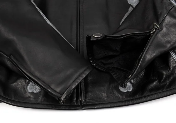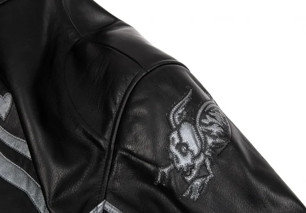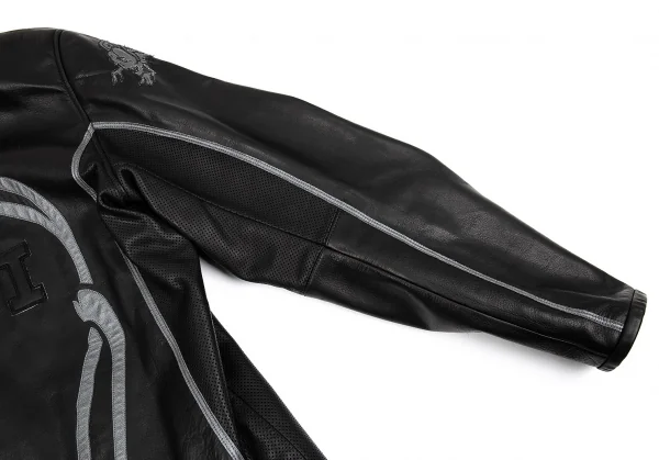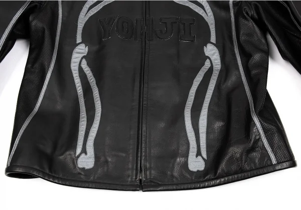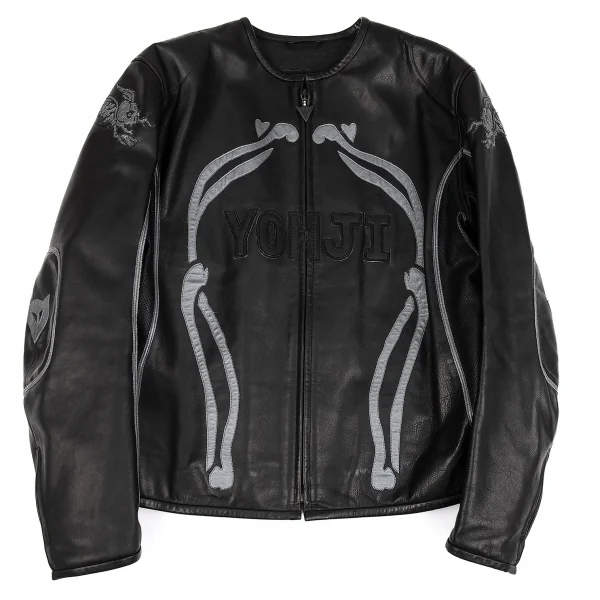 ヨウジヤマモト プールオム×ダイネーゼ Yohji Yamamoto POUR HOMME×DAINESE ドクロパッチホースレザーライダースジャケット 黒54
