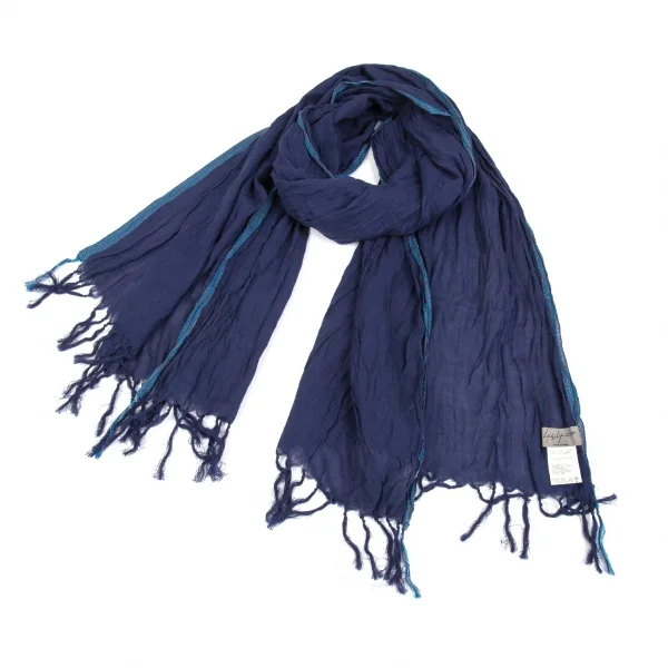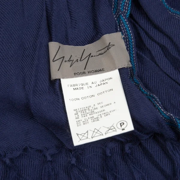 ヨウジヤマモト プールオムYohji Yamamoto POUR HOMME サイドストライプコットンシースルーストール 紺
