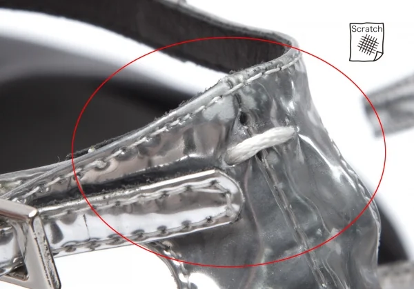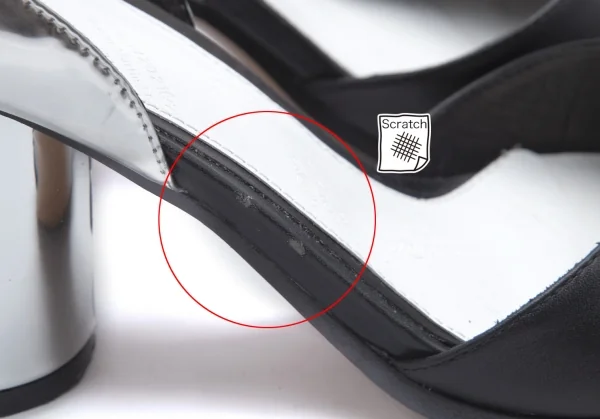 右足サイドに擦れキズ、左足かかとにメタリック剥がれ、アウトソールつま先に擦れがあります(写真参照)。目立った傷や汚れなどなくいい状態です。