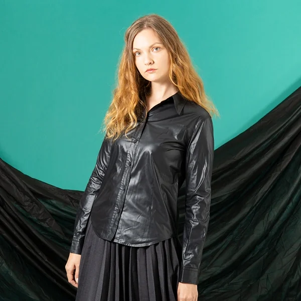 ジャンポールゴルチエ クラシックJean Paul GAULTIER CLASSIQUE ポリ光沢長袖シャツ 黒40