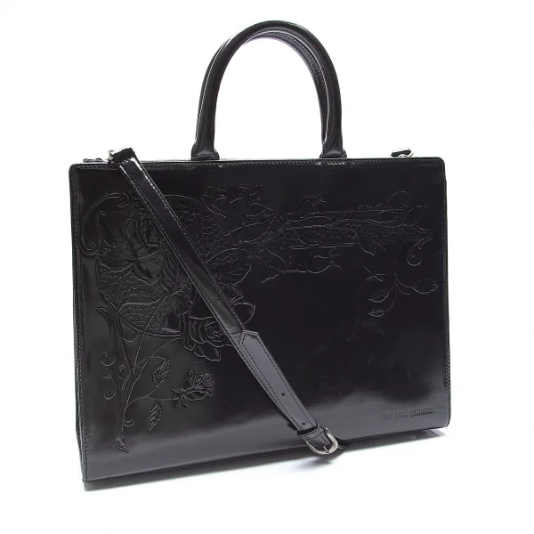 ジャンポールゴルチエJean Paul GAULTIER ニューローズエナメルレザーバッグ 黒
