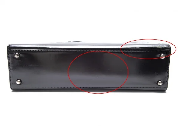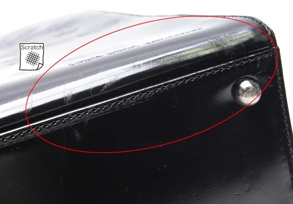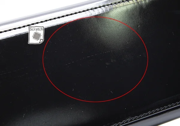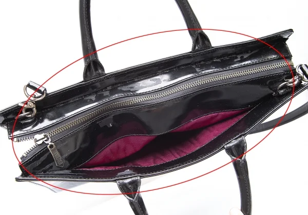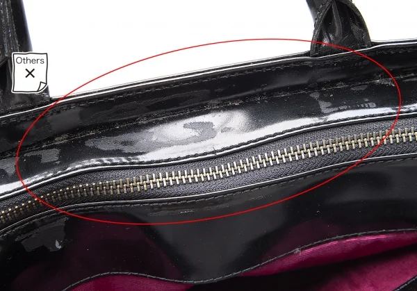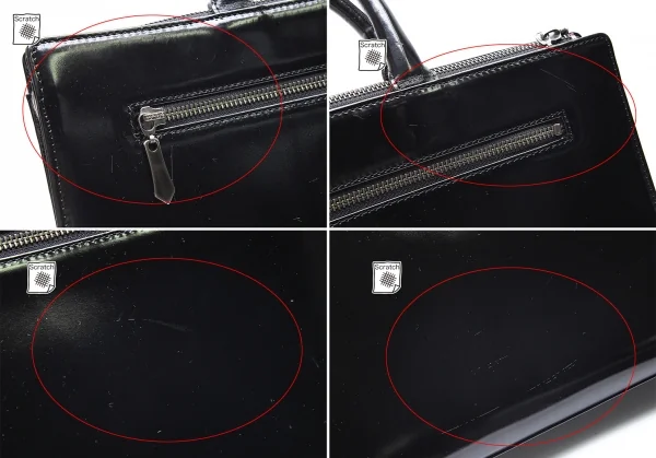 内側ジップポケット×1あります。全体表面キズ、開口部張り付き跡があります(写真参照)。その他目立った傷や汚れなどなくいい状態です。