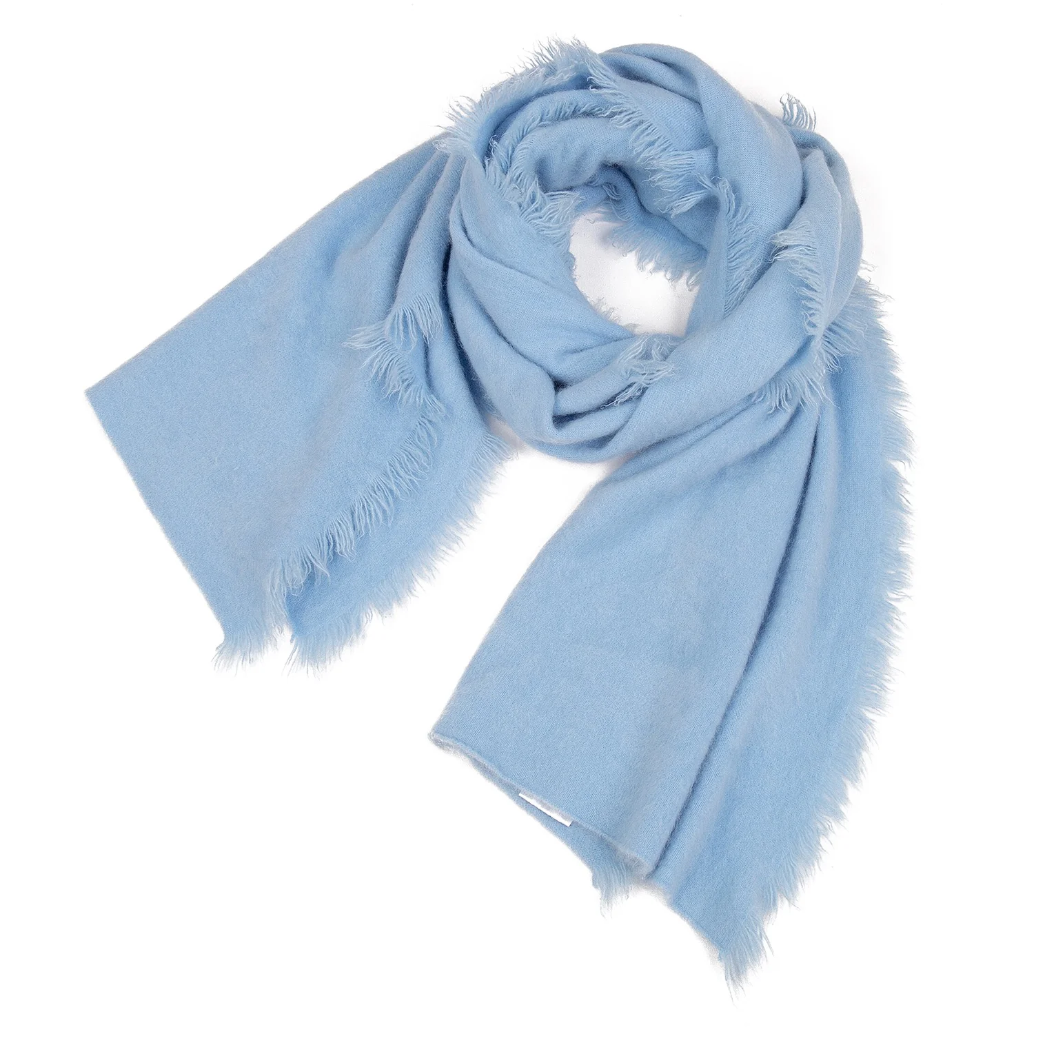 レキップヨシエイナバL'EQUIPE YOSHIE INABA カシミヤ起毛サイドフリンジロング大判ストール 水色