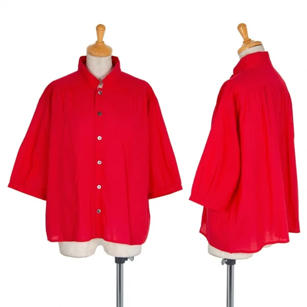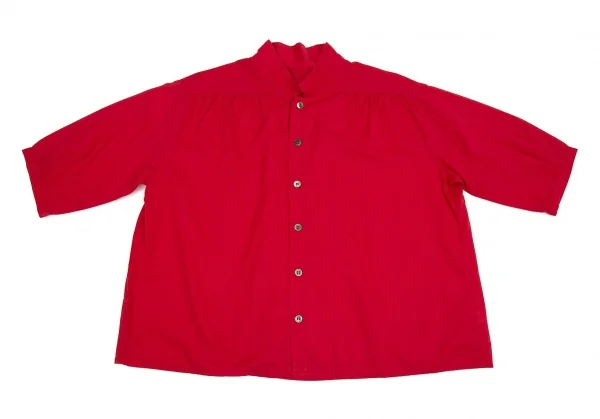 ワイズフォーリビングY's for living スタンドカラー五分袖ワイドシャツ 赤L位