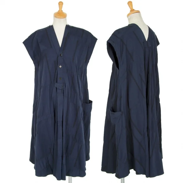 ワイズY's パネルジャガードビッグシルエットノースリーブワンピース 紺2