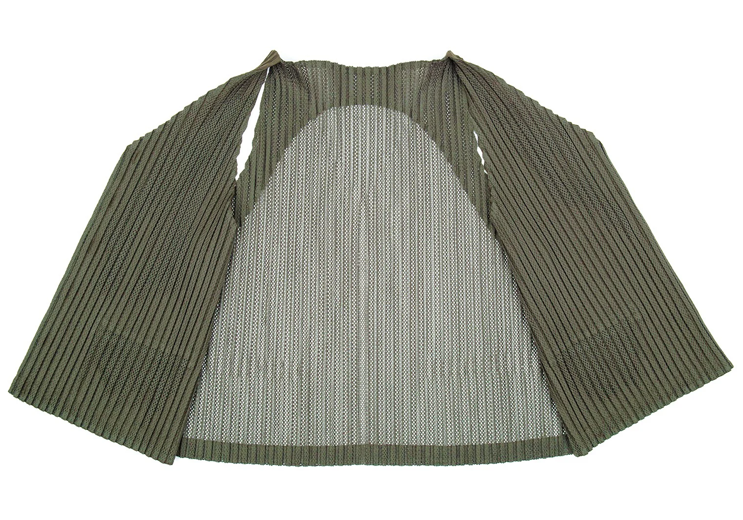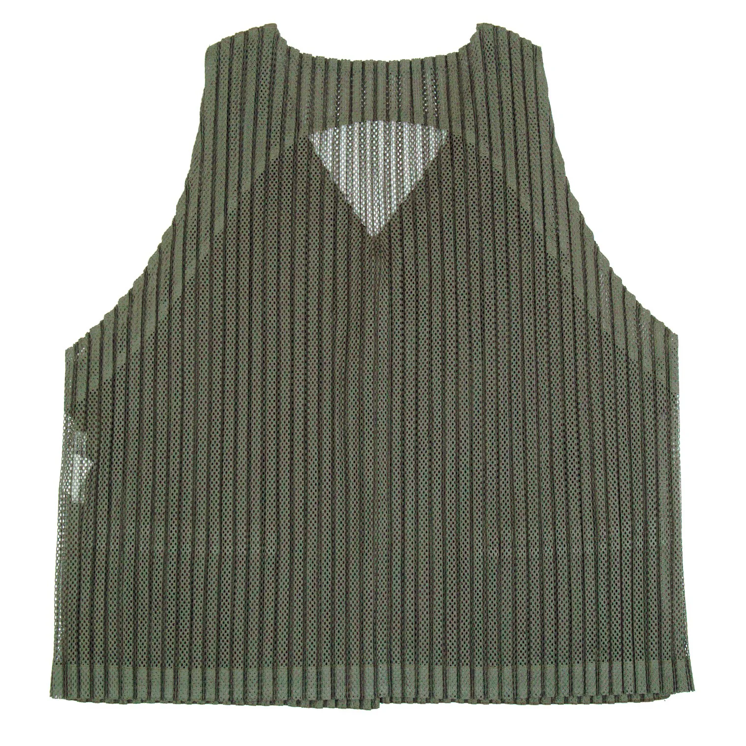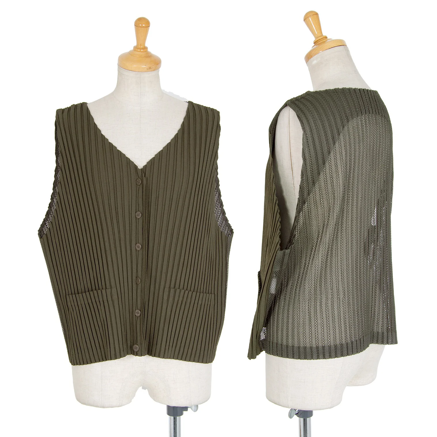 イッセイミヤケISSEY MIYAKEバックメッシュ切替プリーツジレベスト カーキM
