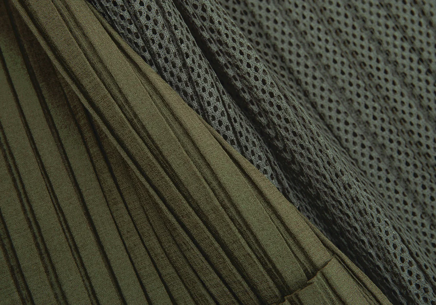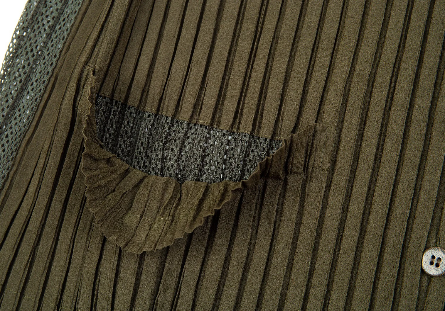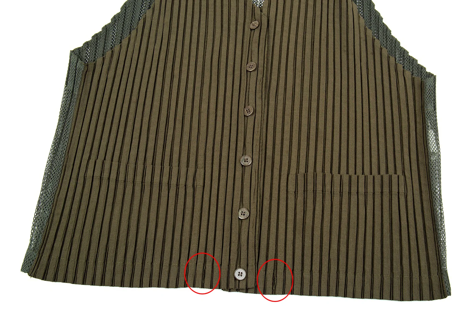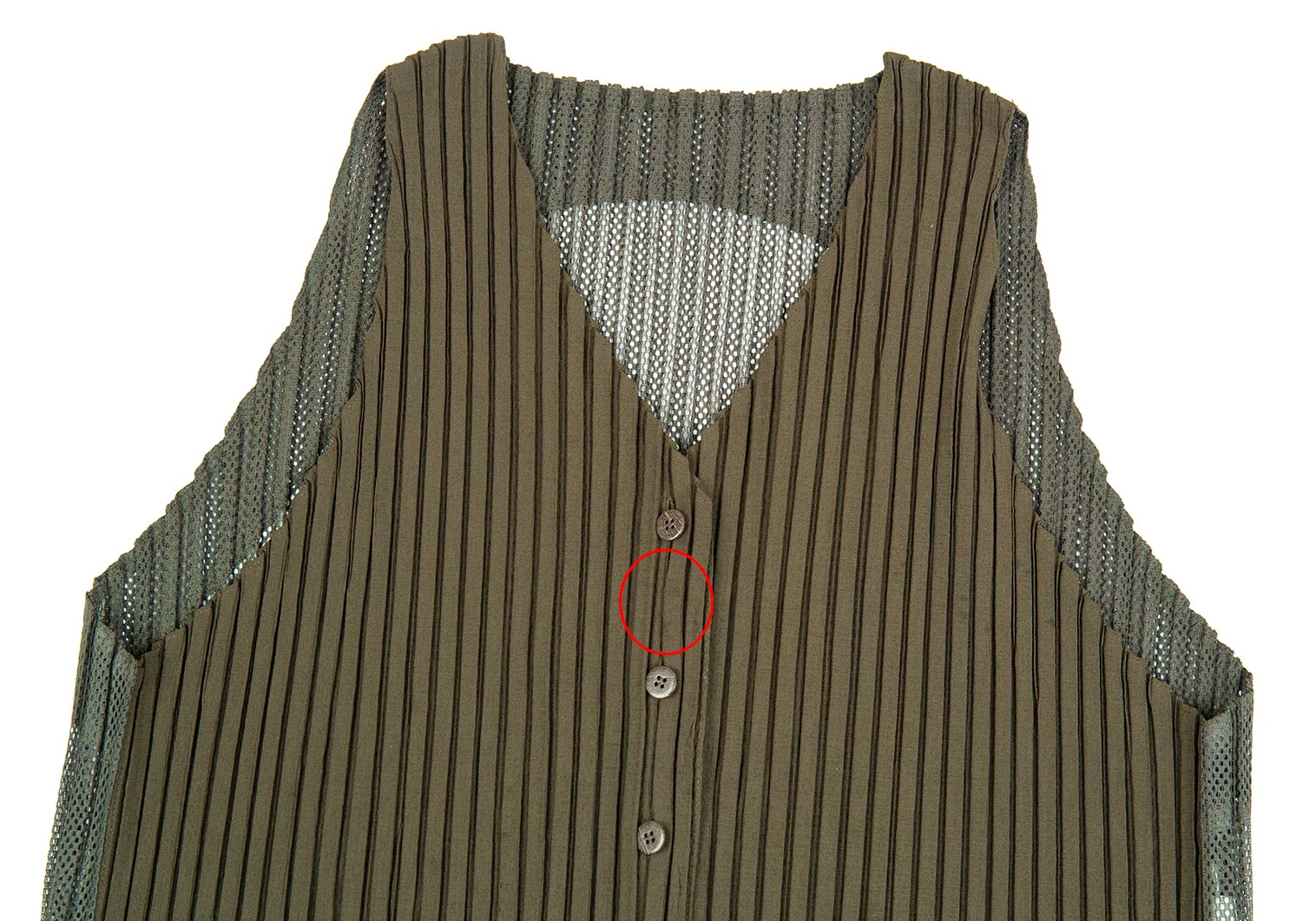 イッセイミヤケISSEY MIYAKEバックメッシュ切替プリーツジレベスト カーキM