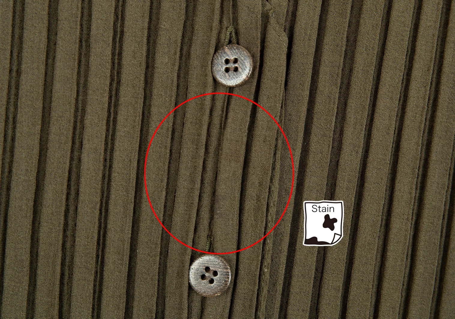 裾紐が欠品しています。メッシュ部分透け感があります。前身頃に薄シミがあります(画像参照)。その他目立ったシミ、汚れ、ほつれ等なくいい状態です。クリーニング済み