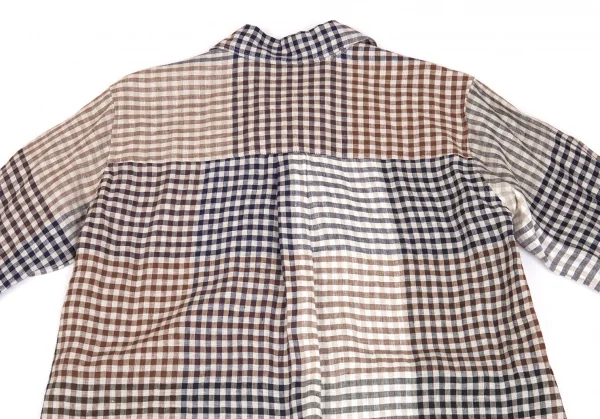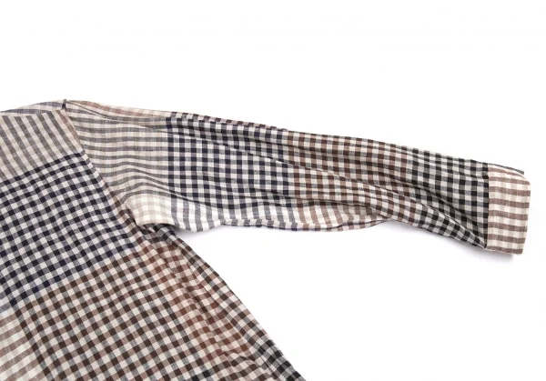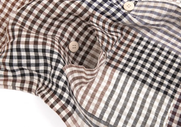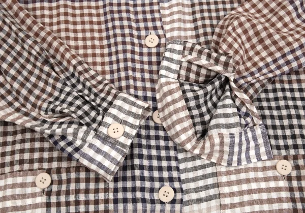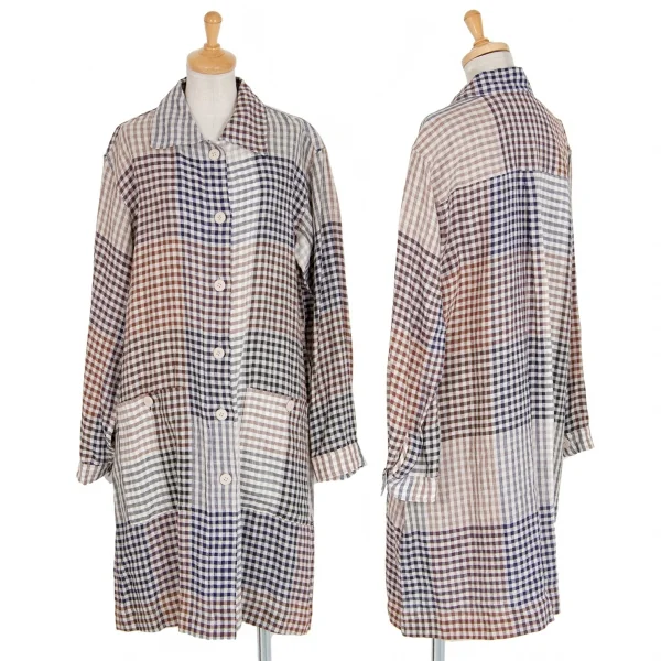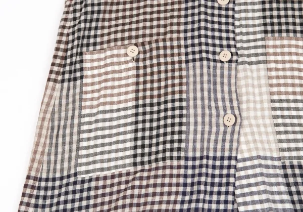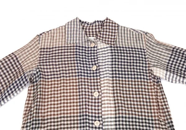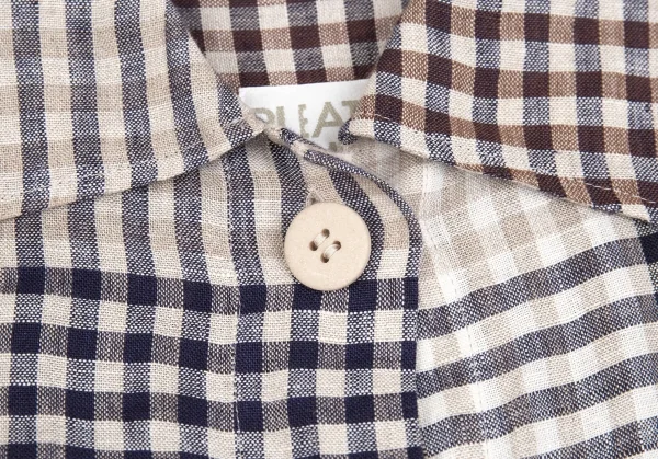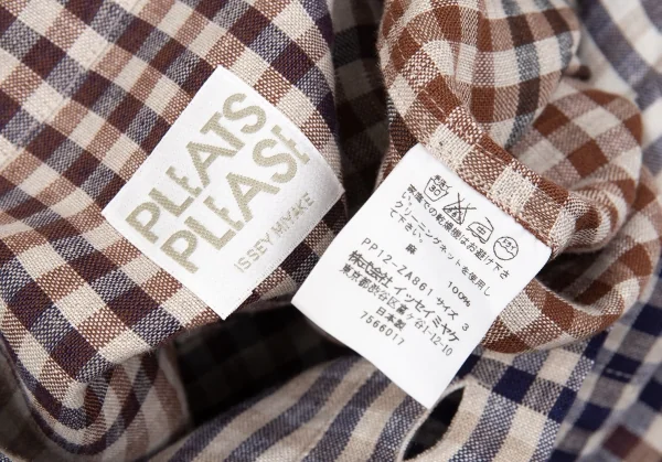 プリーツプリーズPLEATS PLEASE リネンギンガムチェックシャツジャケット モカ紺他3