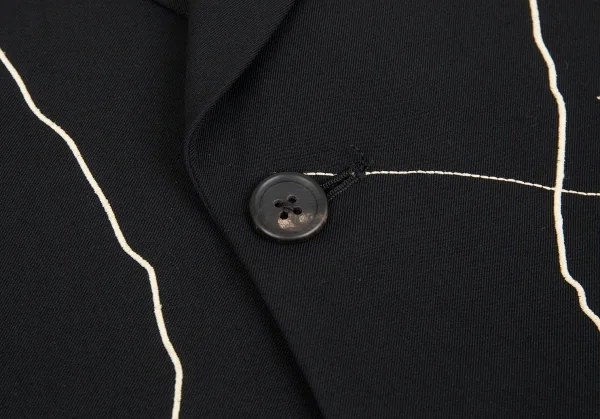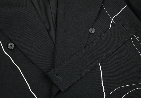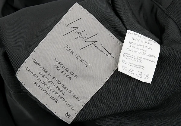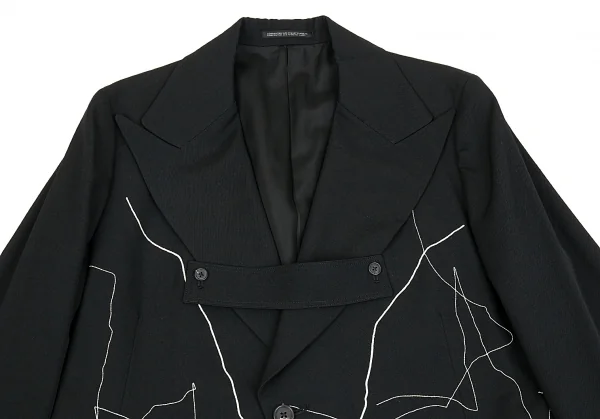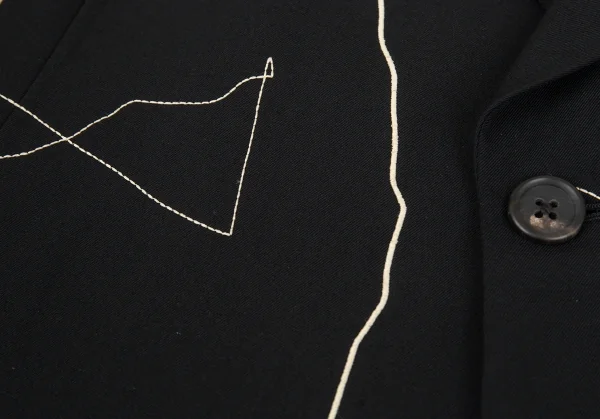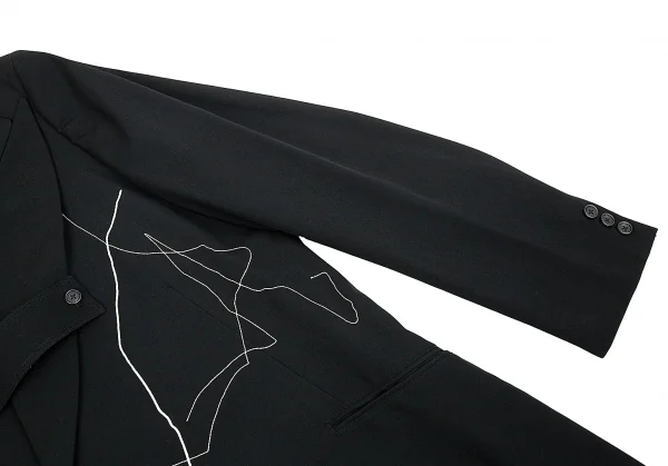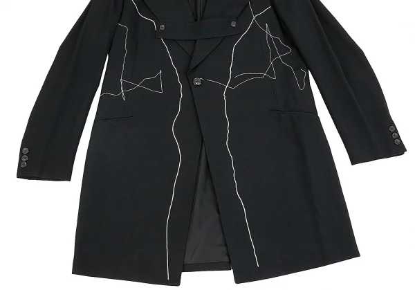 ヨウジヤマモト プールオム Yohji Yamamoto POUR HOMME刺繍ステッチウールギャバ1Bロングジャケット 黒M