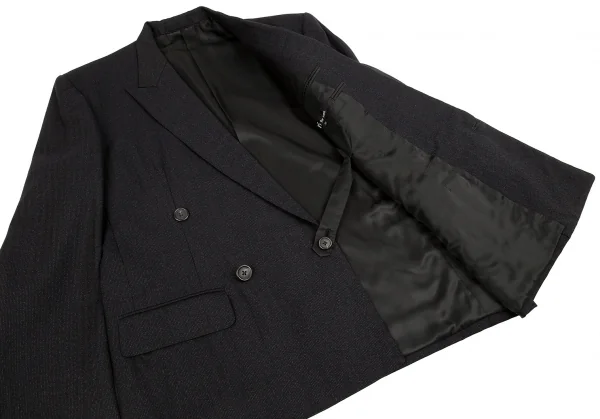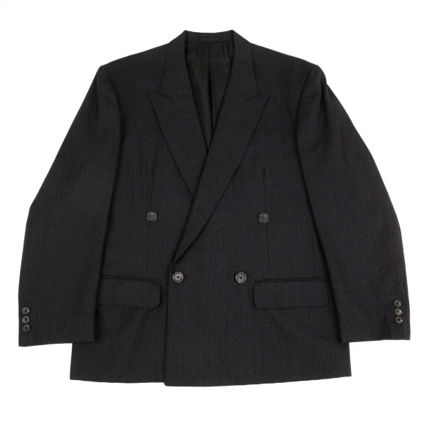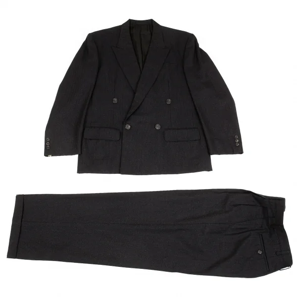 ワイズフォーメンY's for men ウールコットンストライプ織りダブルブレストセットアップスーツ 紺M