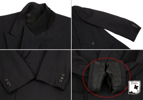 ジャケット:肩パッドあり。袖裏・左ポケットフラップに薄汚れがあります(画像参照)。その他目立ったシミ、汚れ、ほつれ等なくいい状態です。クリーニング済み