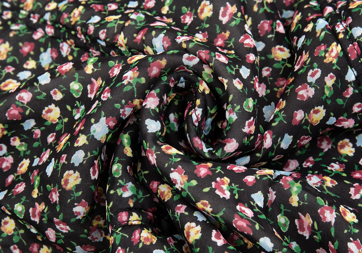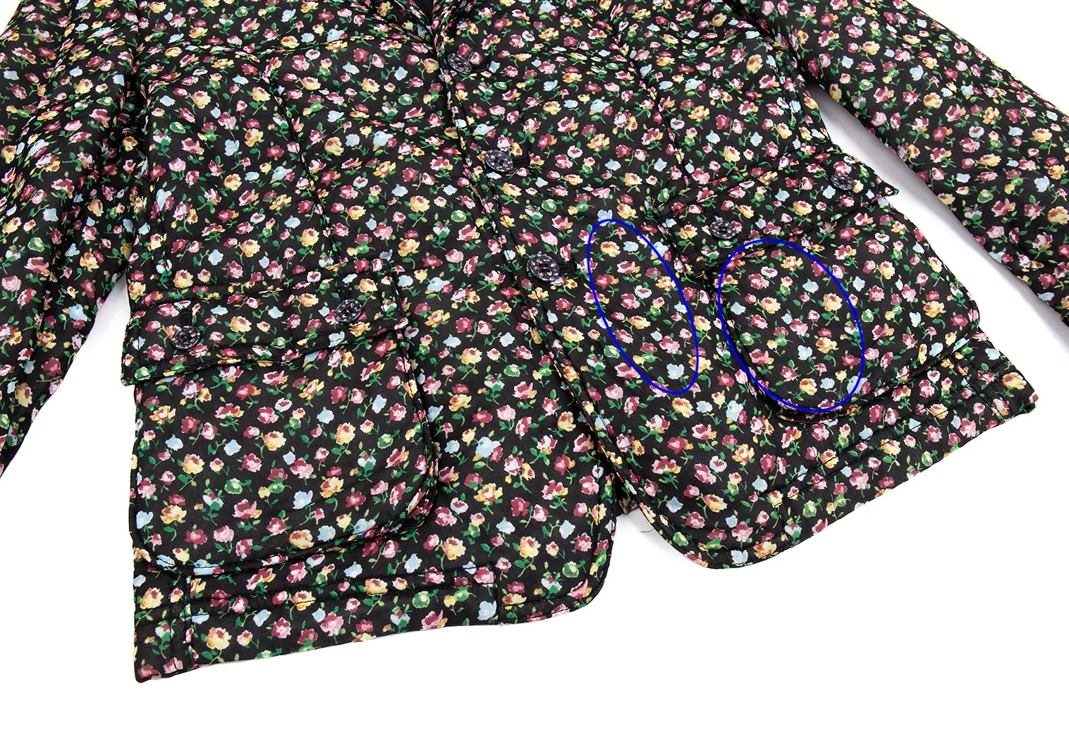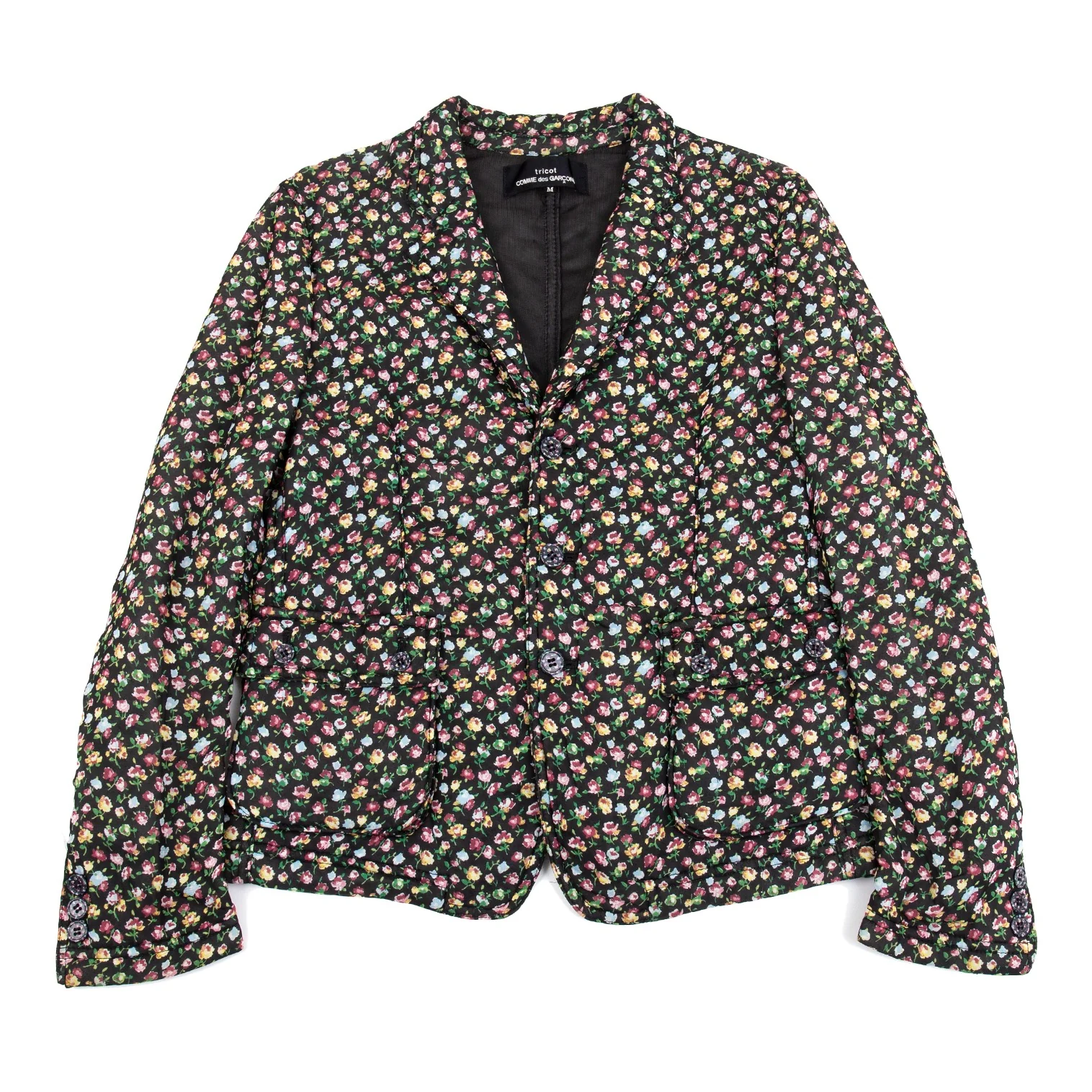 トリココムデギャルソンtricot COMME des GARCONS小花プリントシフォン中綿ジャケット 黒マルチM