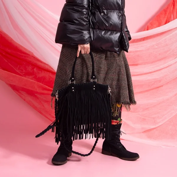ジュンヤワタナベ コムデギャルソンJUNYA WATANABE COMME des GARCONS フリンジデザインスウェードトートバッグ 黒