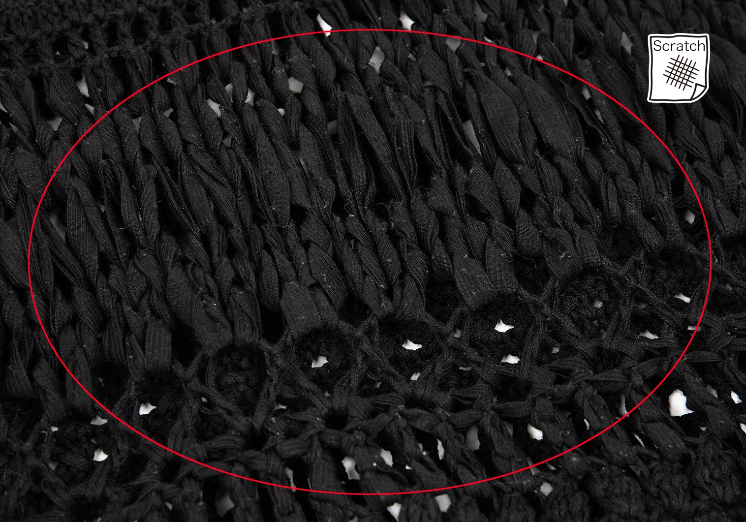 編み目から内側が見えます。全体に若干の毛羽立ち・毛玉があります。目立ったシミ、汚れ、ほつれ等なくいい状態です。クリーニング済み