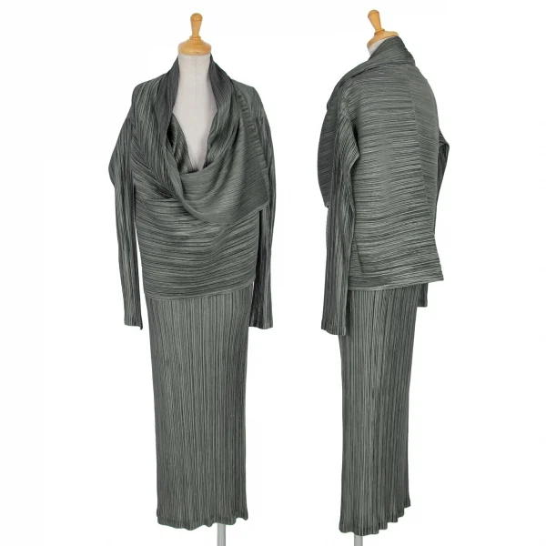 イッセイミヤケISSEY MIYAKEシャイニープリーツスカート グレーM