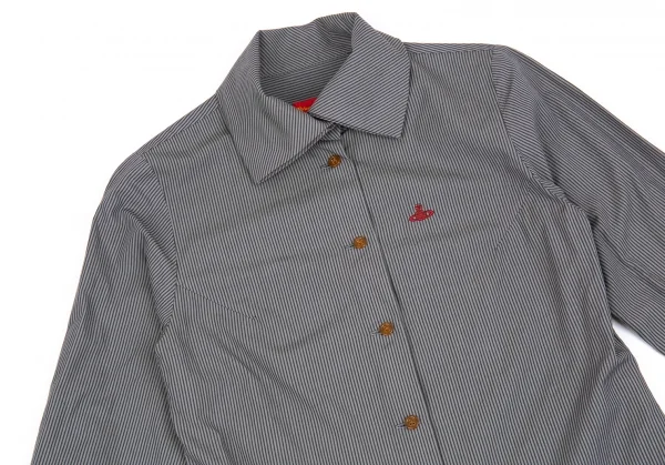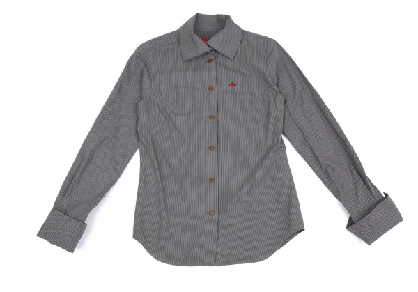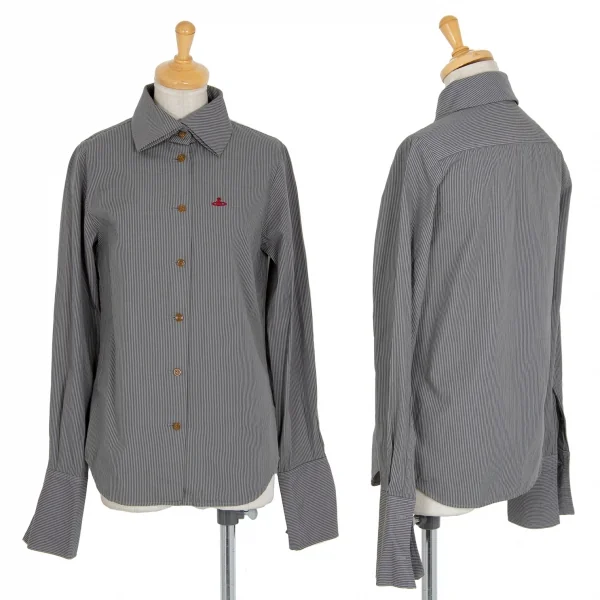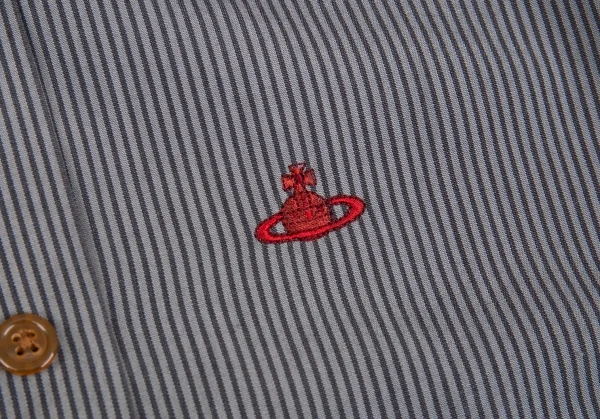 ヴィヴィアンウエストウッド レッドレーベルVivienne Westwood Red Label オーブ刺繍ストライプダブルカフスシャツ グレー1