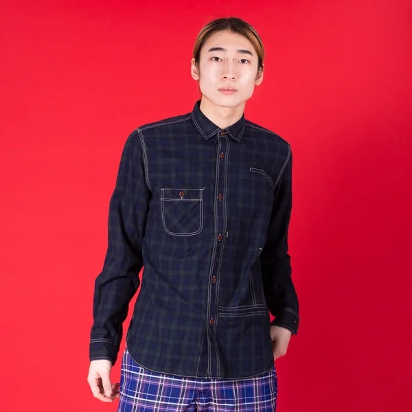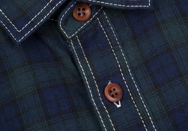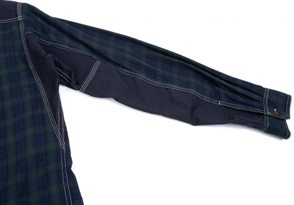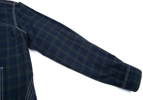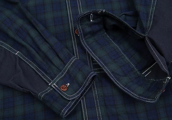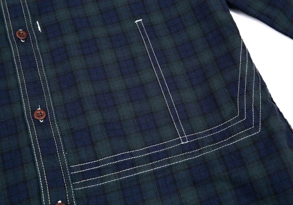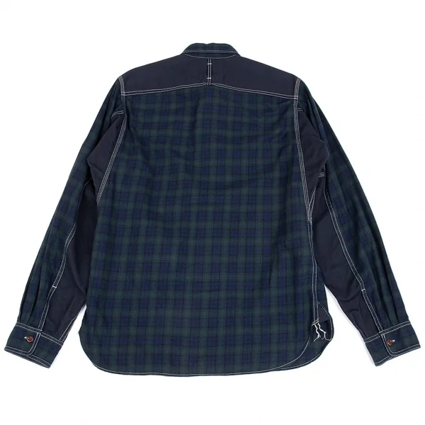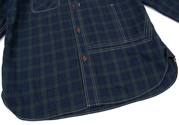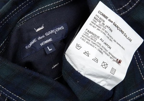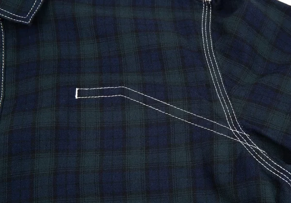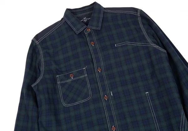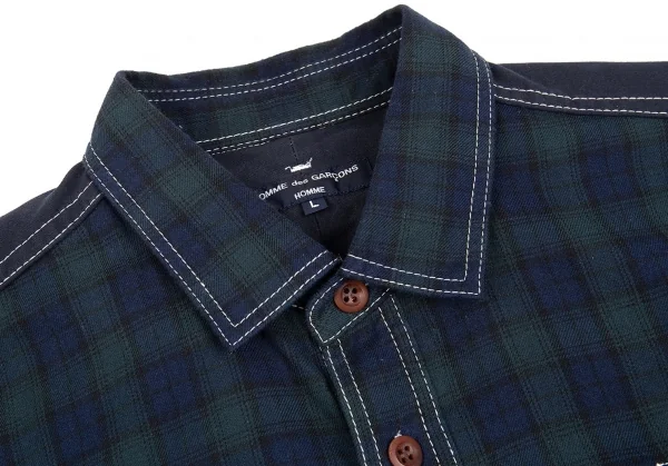 コムデギャルソン オムCOMME des GARCONS HOMME ステッチデザインタータンチェックシャツ 深緑紺L