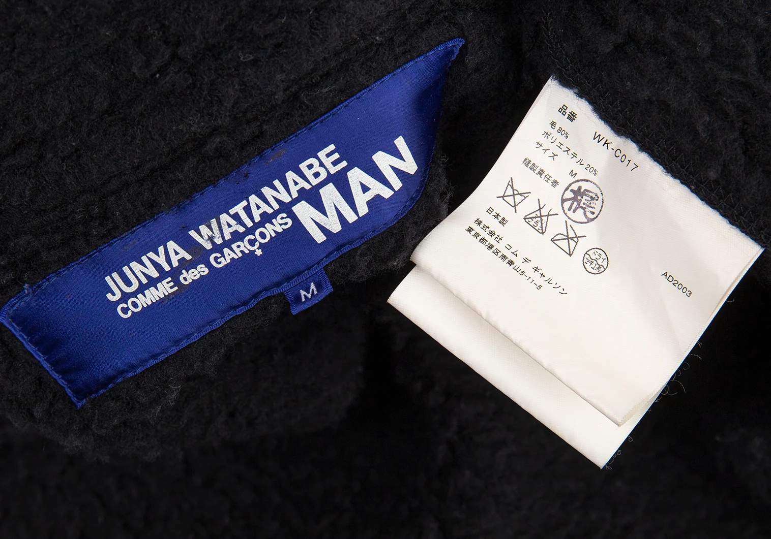 ジュンヤワタナベマン コムデギャルソンJUNYA WATANABE MAN COMME des GARCONS裏ボアニットピーコート 黒M