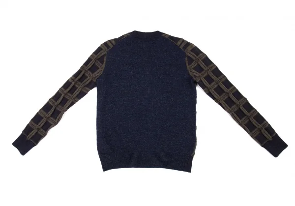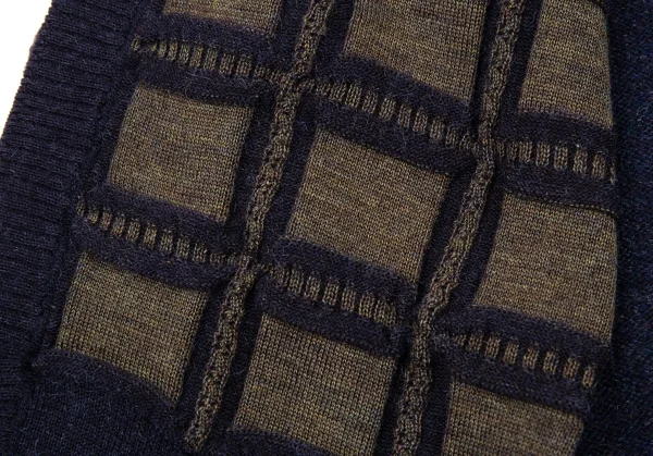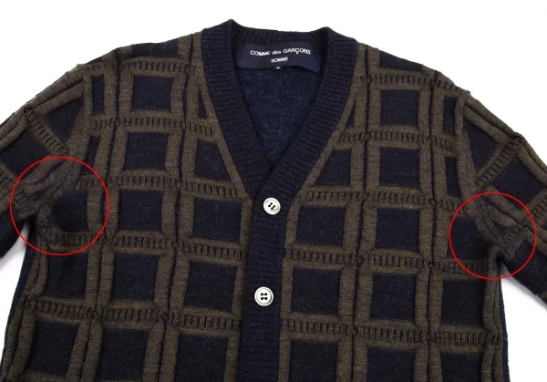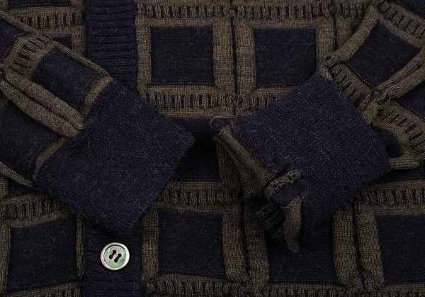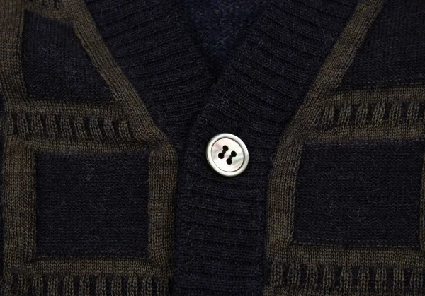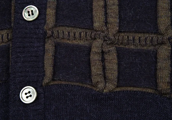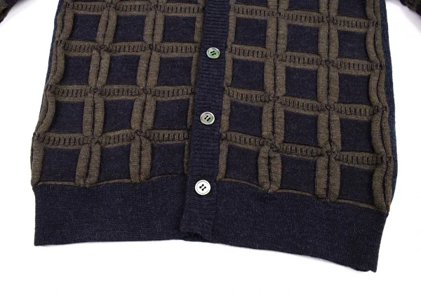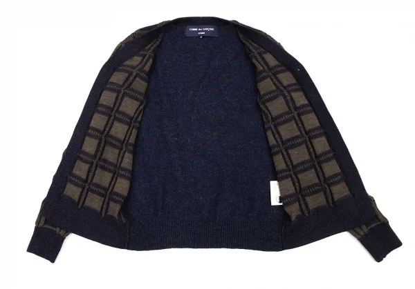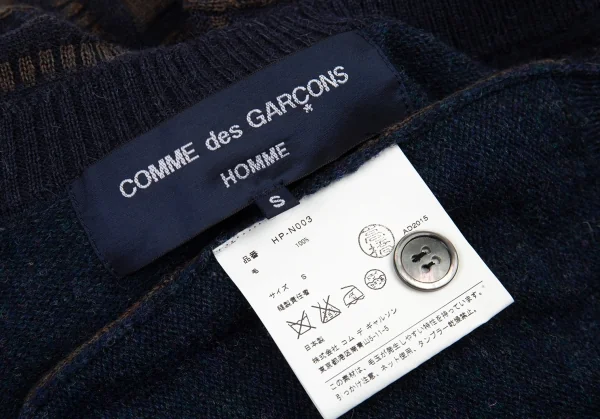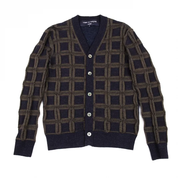 コムデギャルソン オムCOMME des GARCONS HOMME フロントブロックジャガードニットカーディガン 紺S