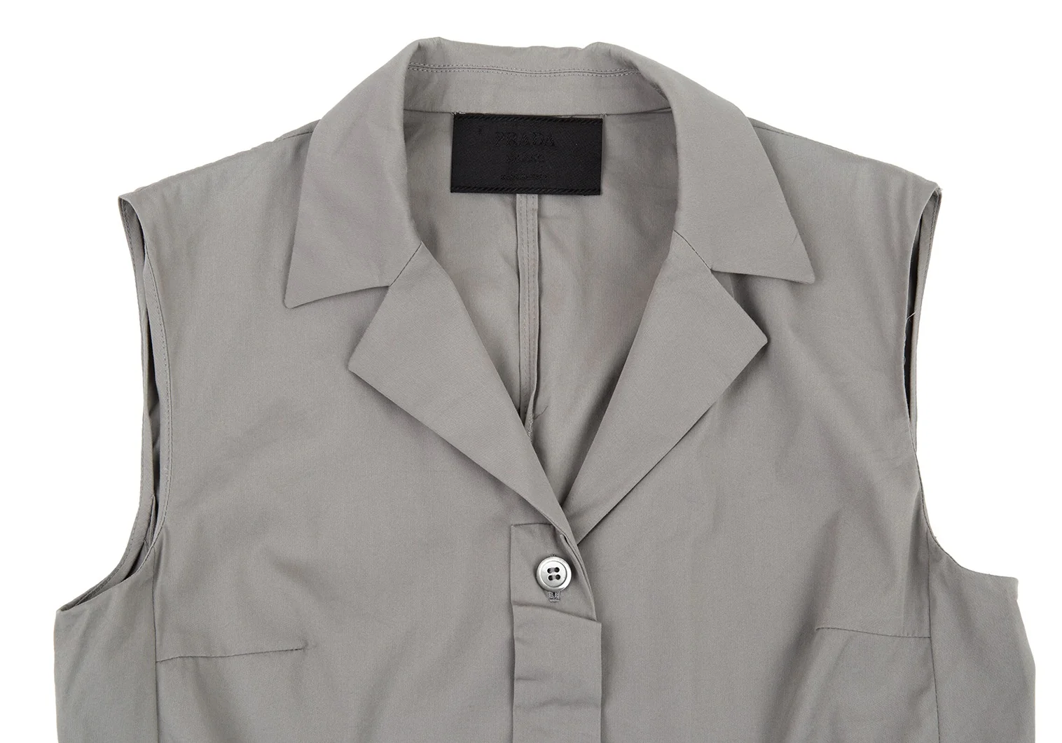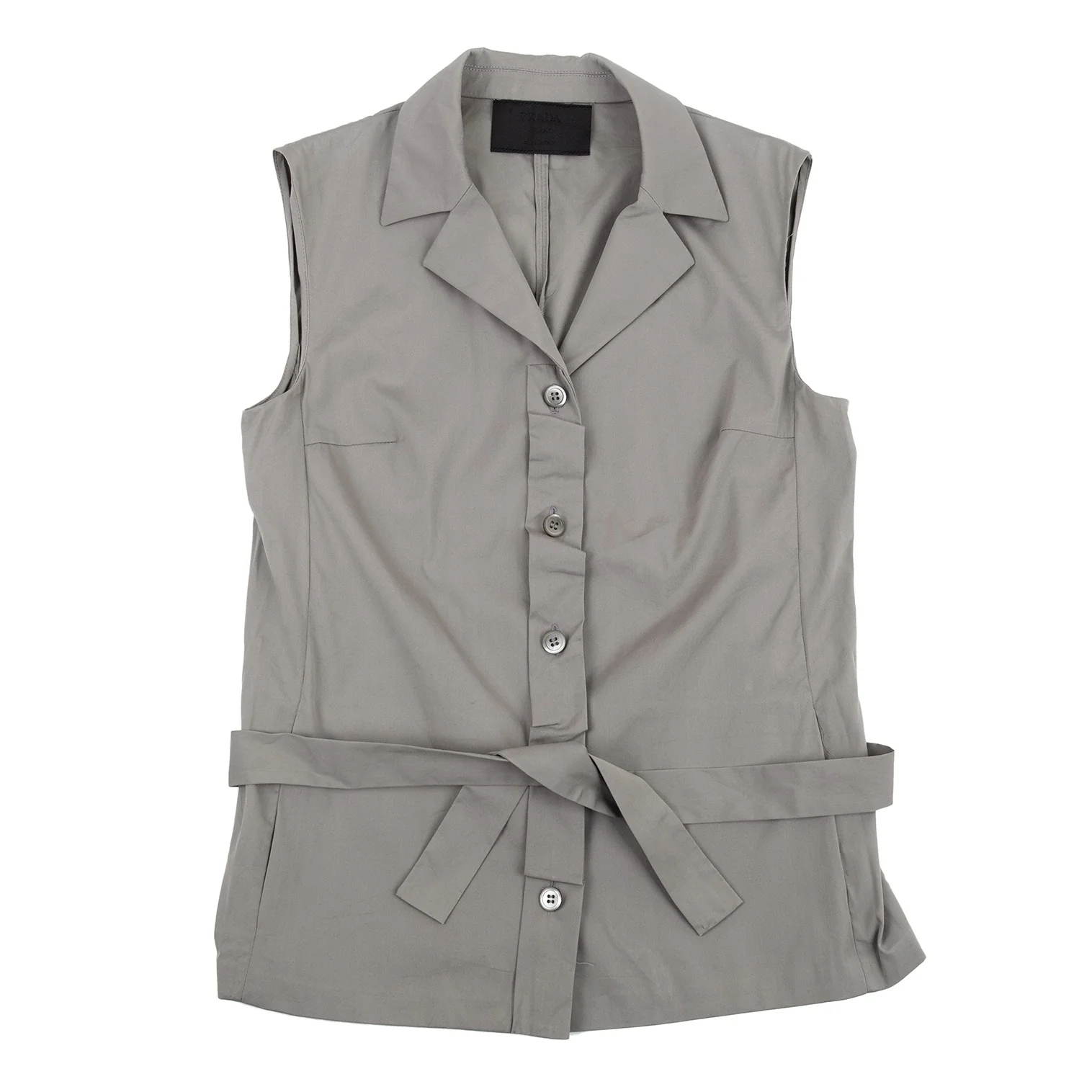 プラダPRADA ベルト付きノースリーブシャツ グレー40