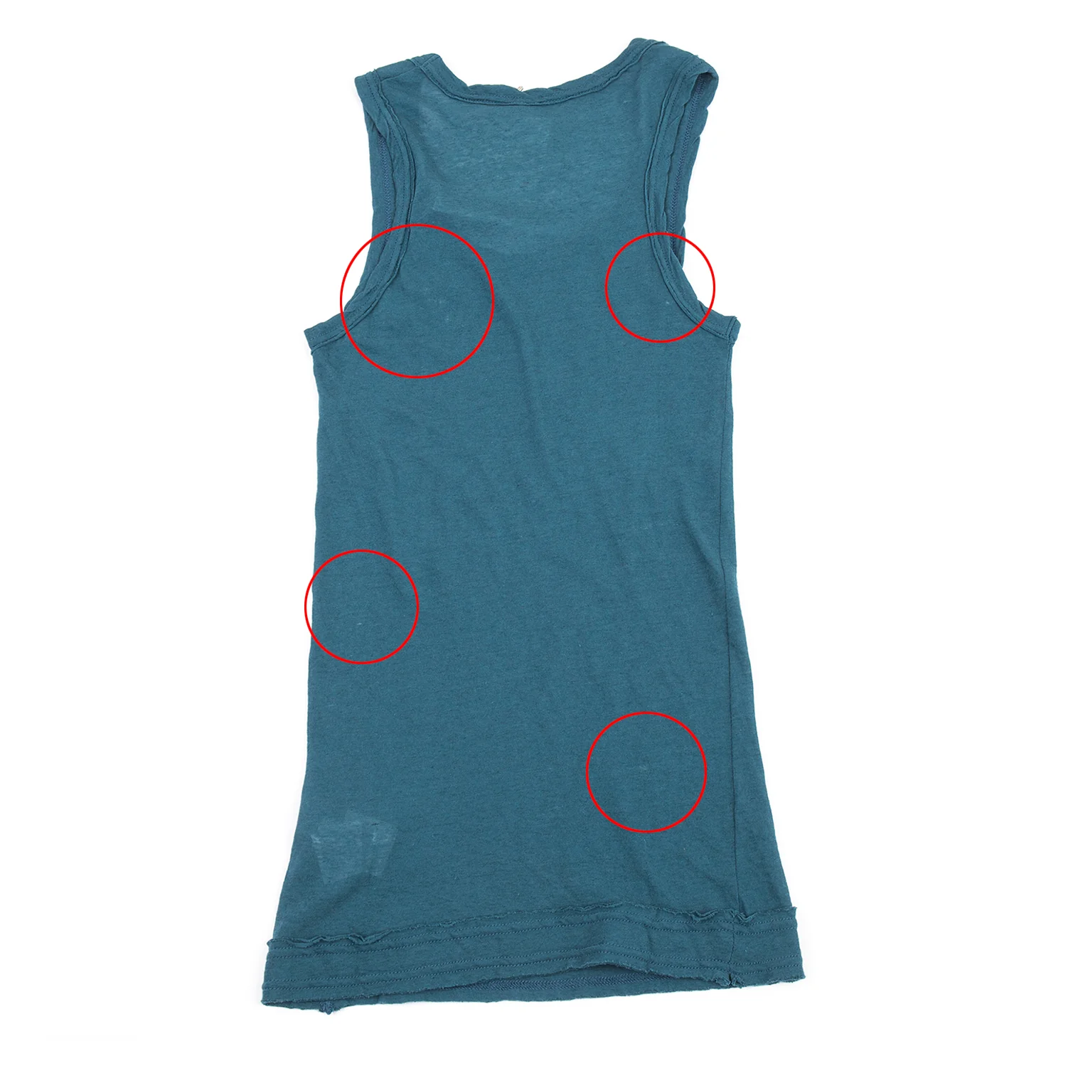 透け感があります。前・後薄汚れがあります(写真参照)。その他に目立ったシミ、汚れ、ほつれ等なくいい状態です。クリーニング済み