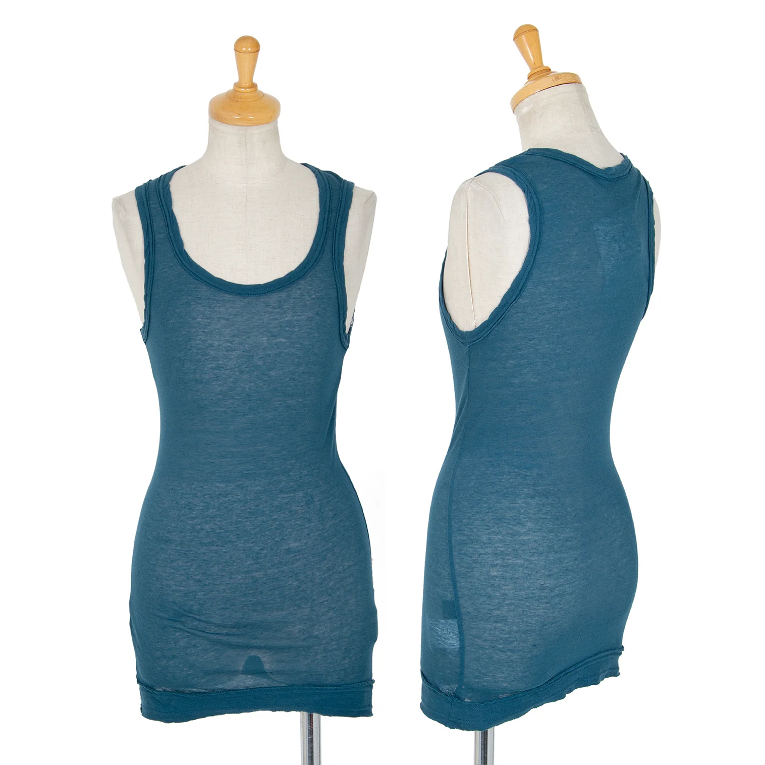 ワイズY's コットンリネン裁ち切りタンクトップ ダークブルー2