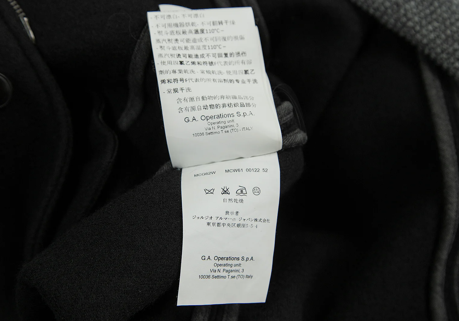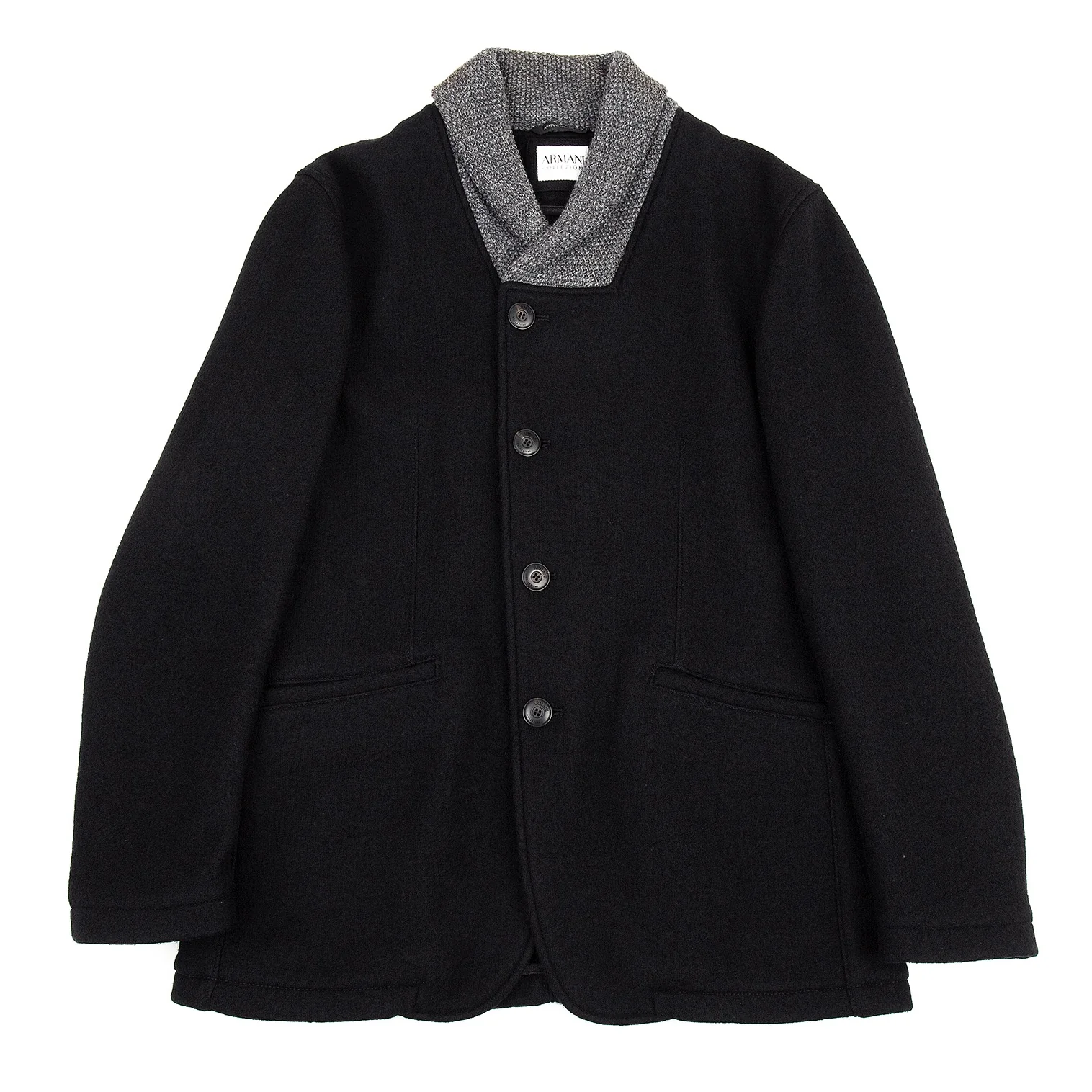 アルマーニ コレッツォーニ ARMANI COLLEZIONI ショールカラーウールジップジャケット 黒52