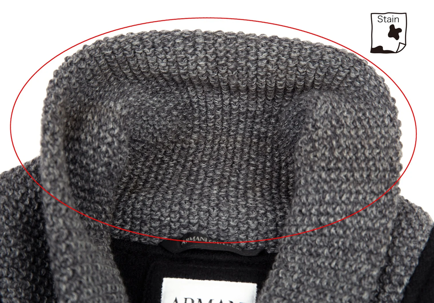 首元に薄汚れがあります。(写真参照)その他目立ったシミ、汚れ、ほつれ等なくいい状態です。クリーニング済み