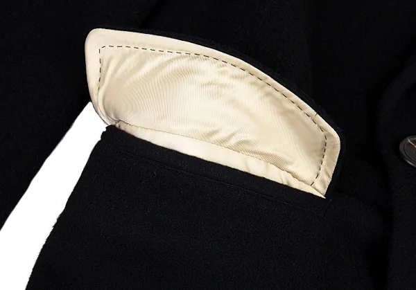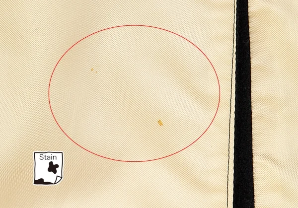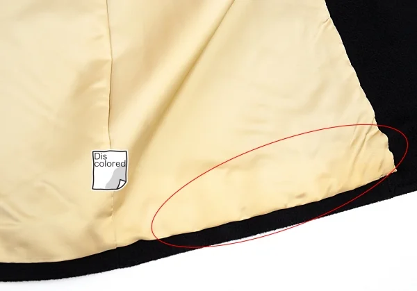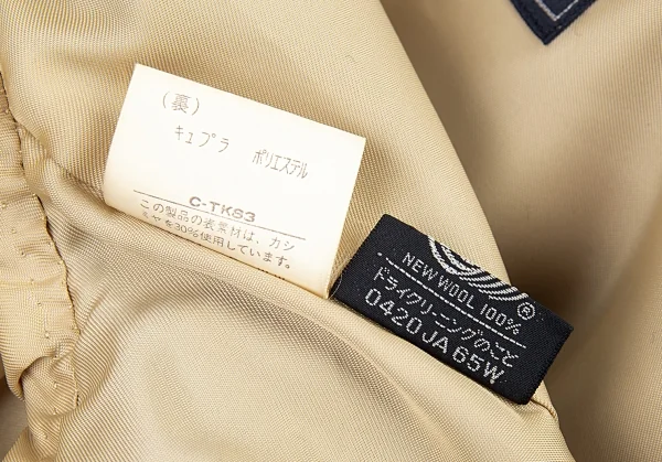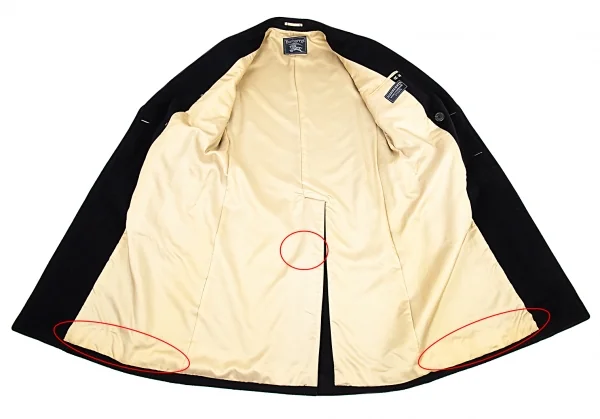 裏地中央に汚れ、裾に変色、左肩に薄シミがあります。胸ポケットにネーム刺繍があります。(画像参照)肩パットあり。その他目立ったシミ、汚れ、ほつれ等ありません。クリーニング済み
