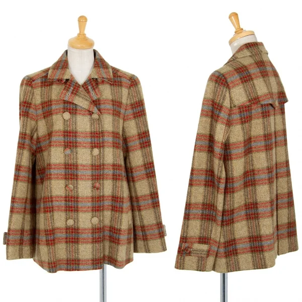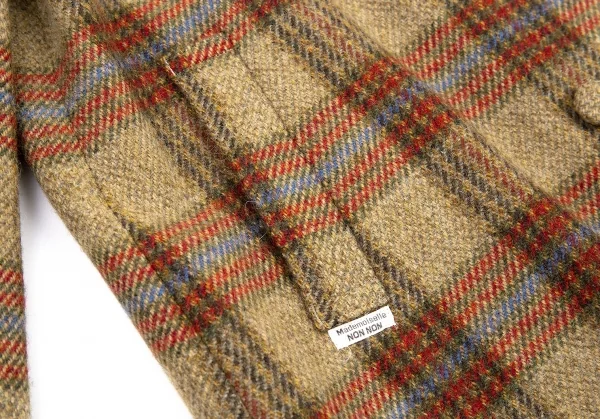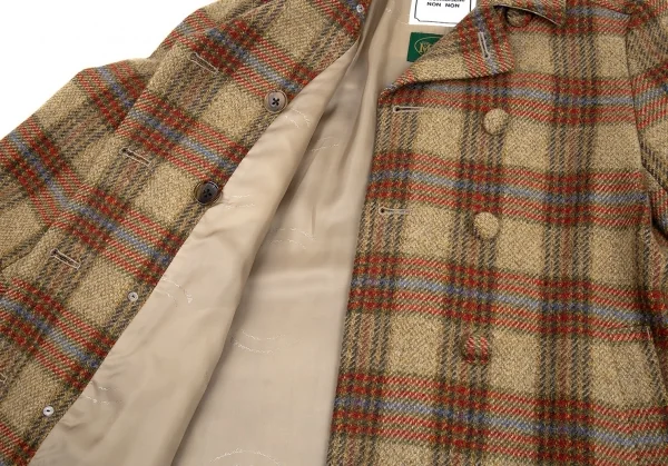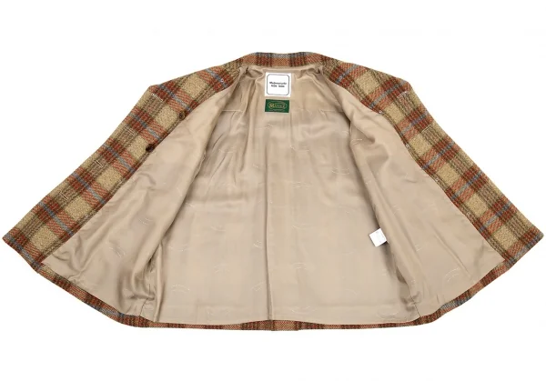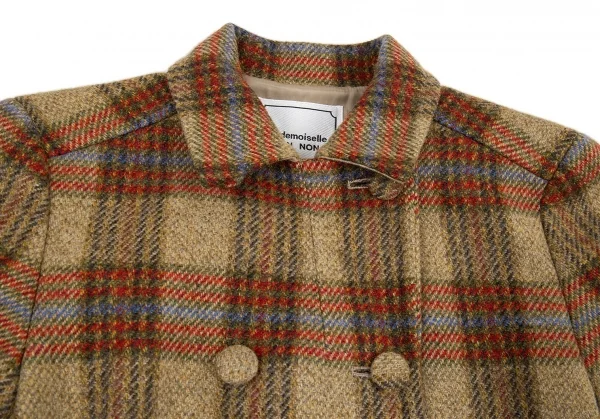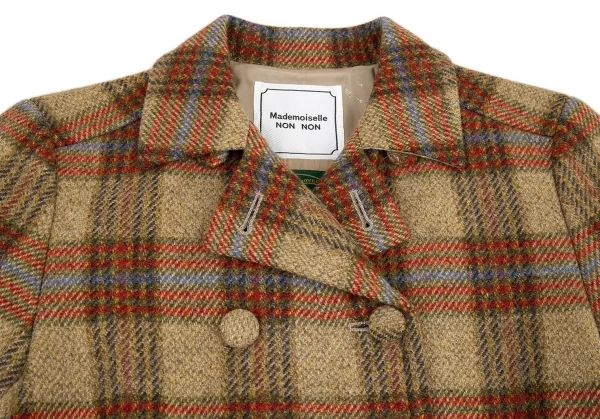 マドモアゼルノンノンMademoiselle NON NON ウールチェックダブルジャケット モカ他38M