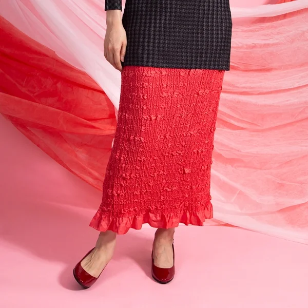 ヨシキヒシヌマYOSHIKI HISHINUMA シャーリングギャザーデザインスカート 赤2