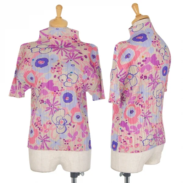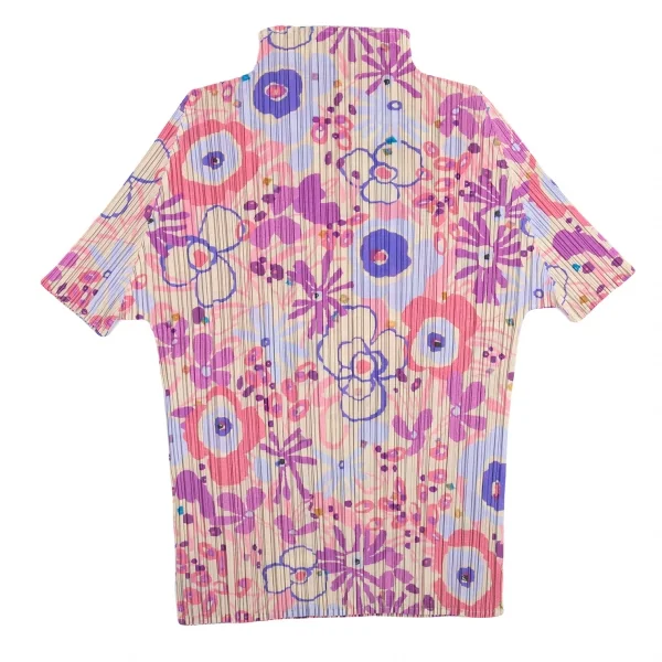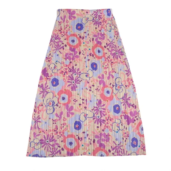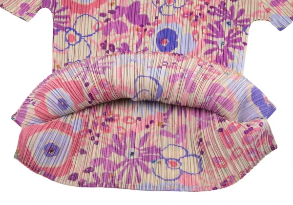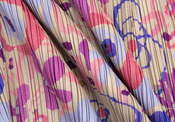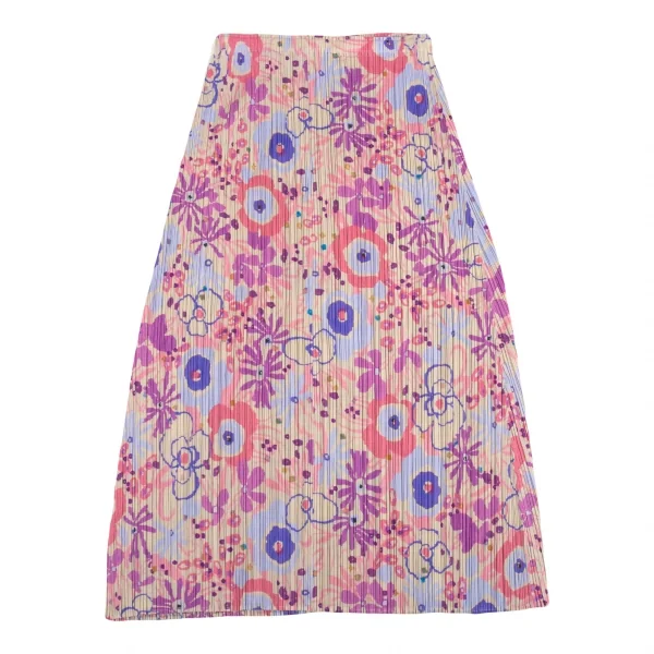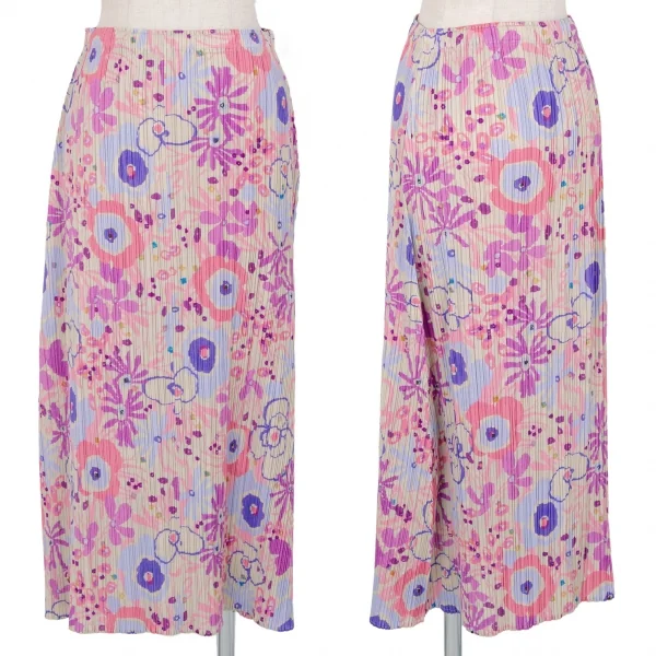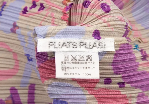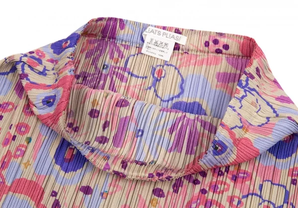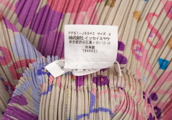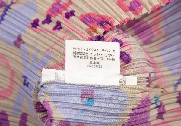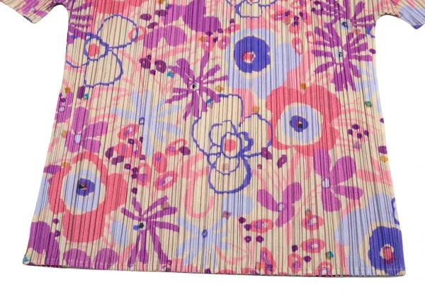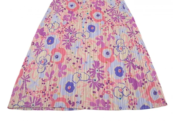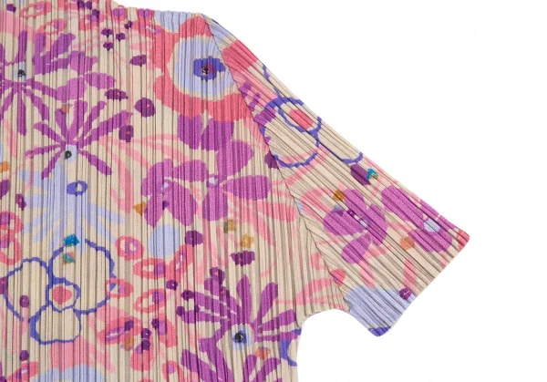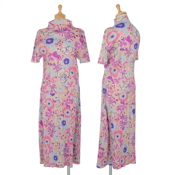 プリーツプリーズPLEATS PLEASE フラワードローイングプリントプリーツセットアップ ベージュマルチ3・2