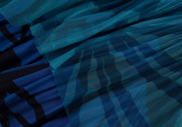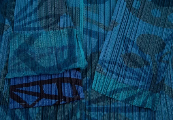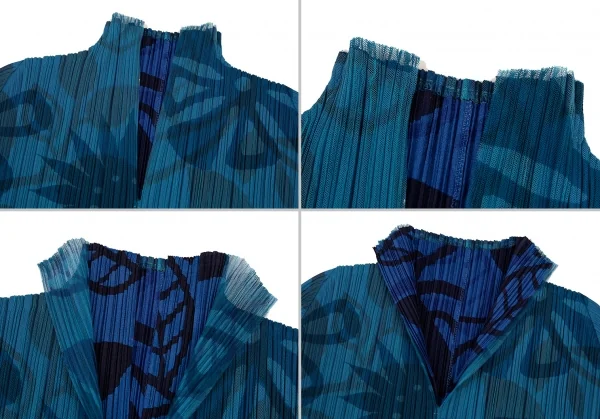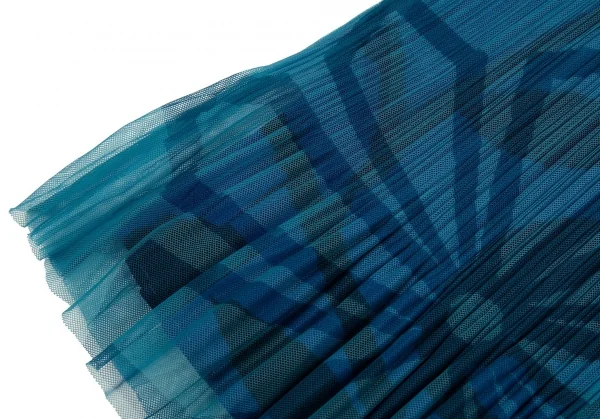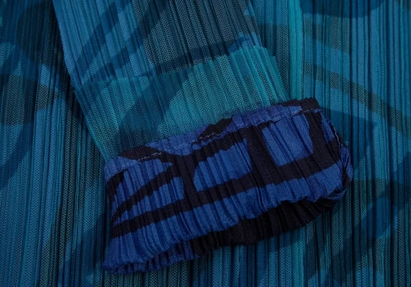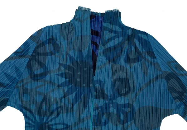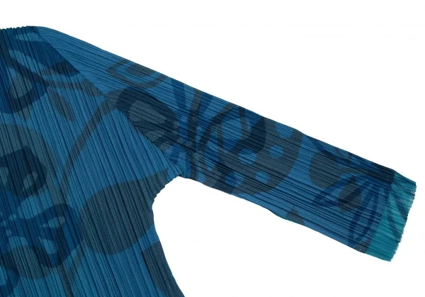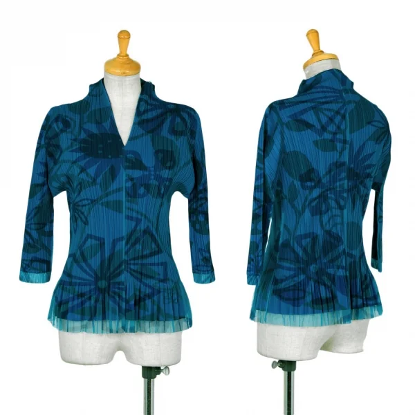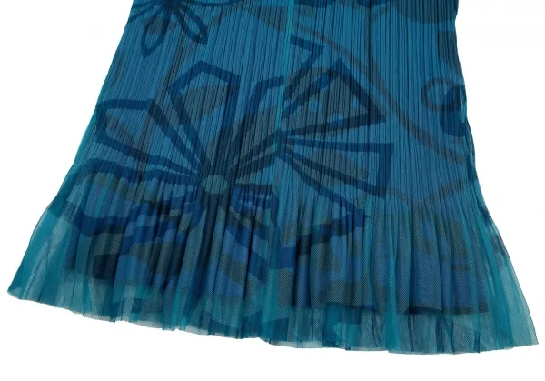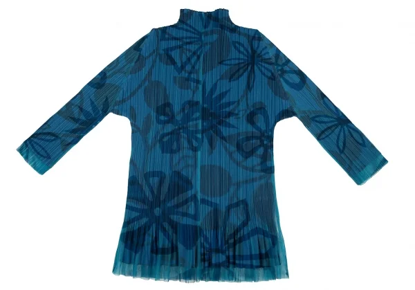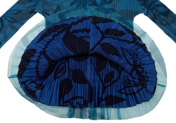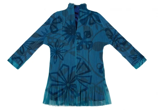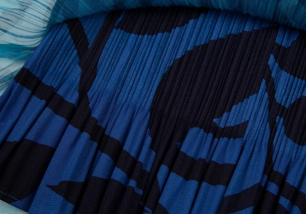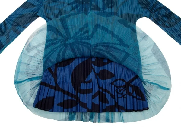プリーツプリーズPLEATS PLEASE フラワープリントチュールレイヤードプリーツスキッパーシャツ 青3