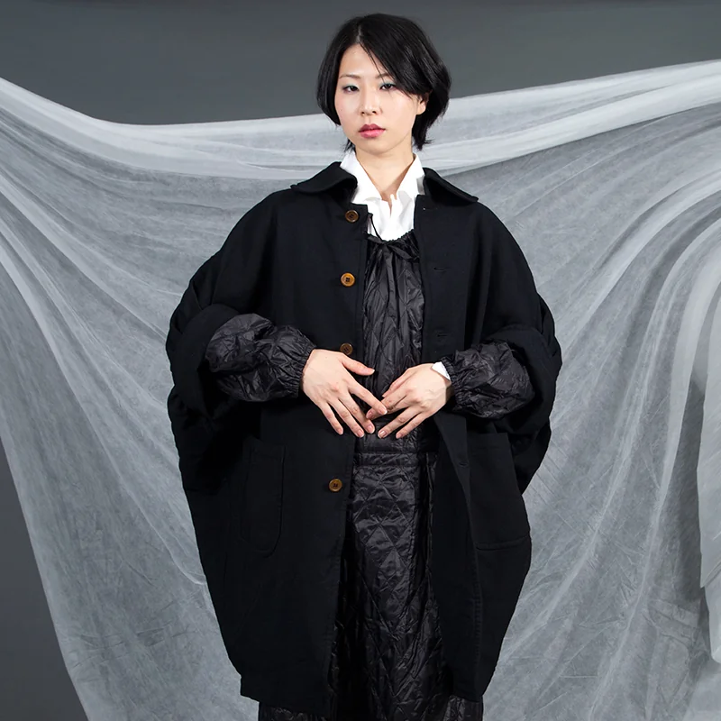 コムデギャルソンCOMME des GARCONS 製品染めロールアップドルマンコート 黒XS